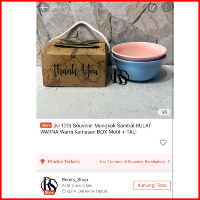 Isi 100 Souvenir Mangkok Sambal Bulat Warna Warni Kemasan Box Motif Tali