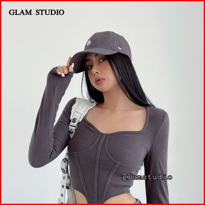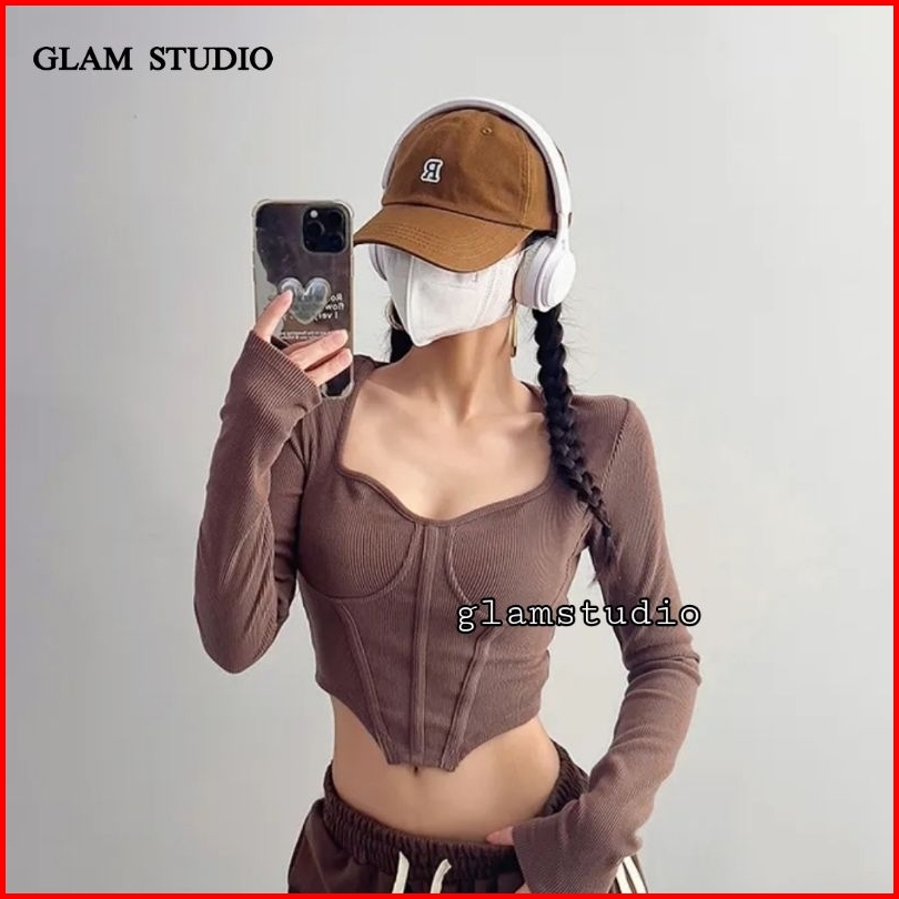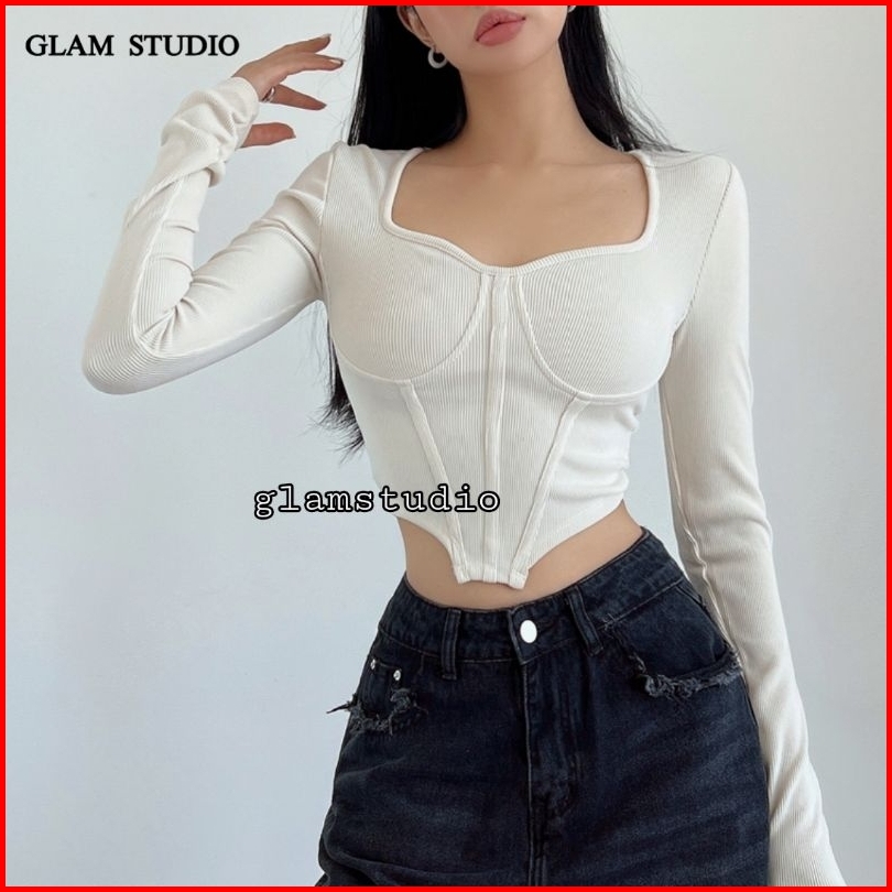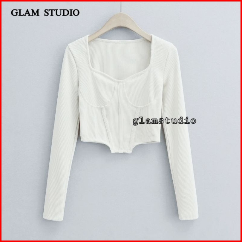 Glamstudio - Crop Top Lengan Panjang Crop Top Long Sleeve Ctls 013 S M L Xl
