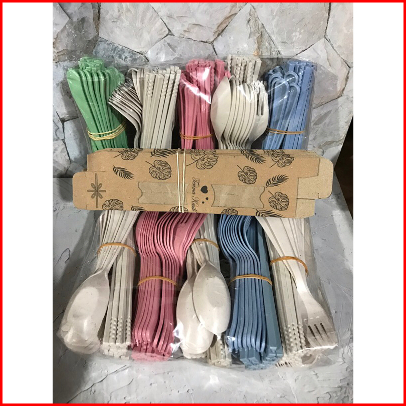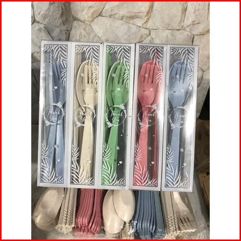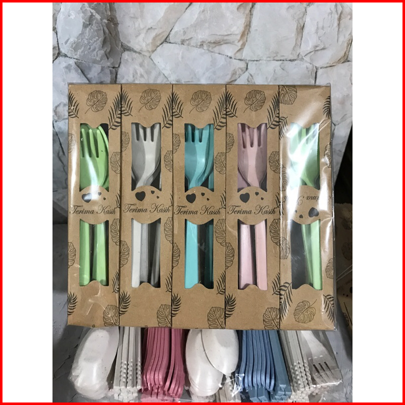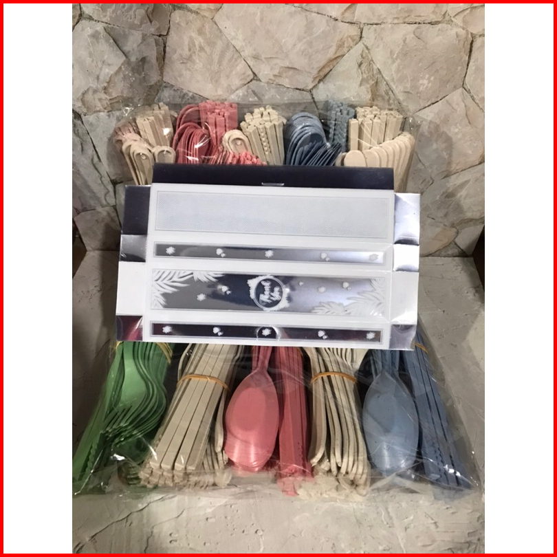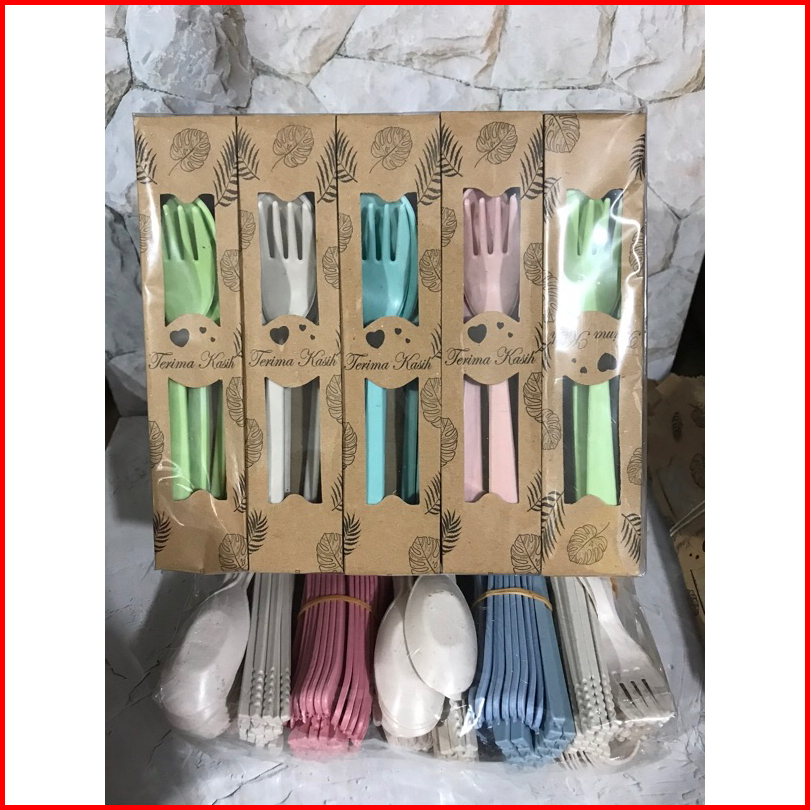Isi 100 Souvenir Travel Set Lokal Kemasan Box Motif Sendok Garpu Sumpit