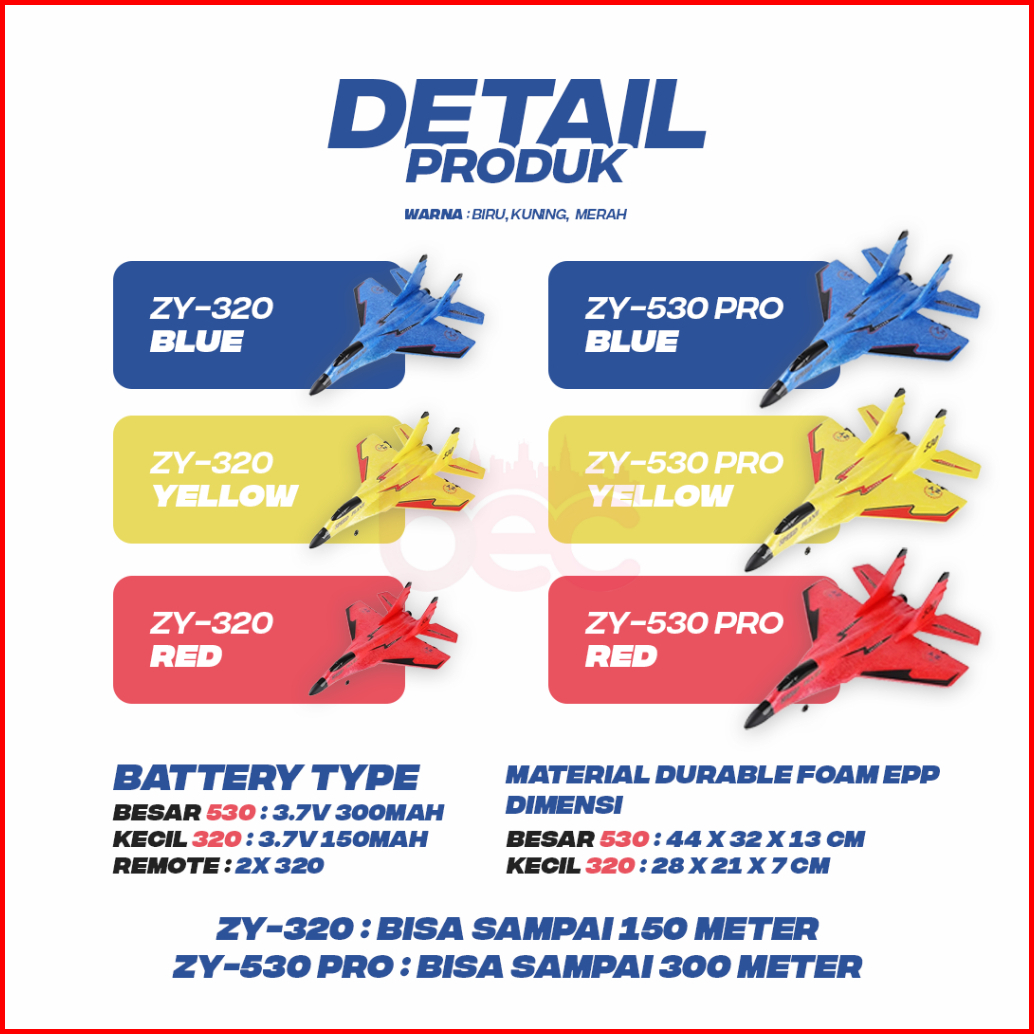 Bec Mainan Pesawat Rc Terbang Remote Control Led Pesawat Glider Airplane Foam Zy-530pro Zy-320