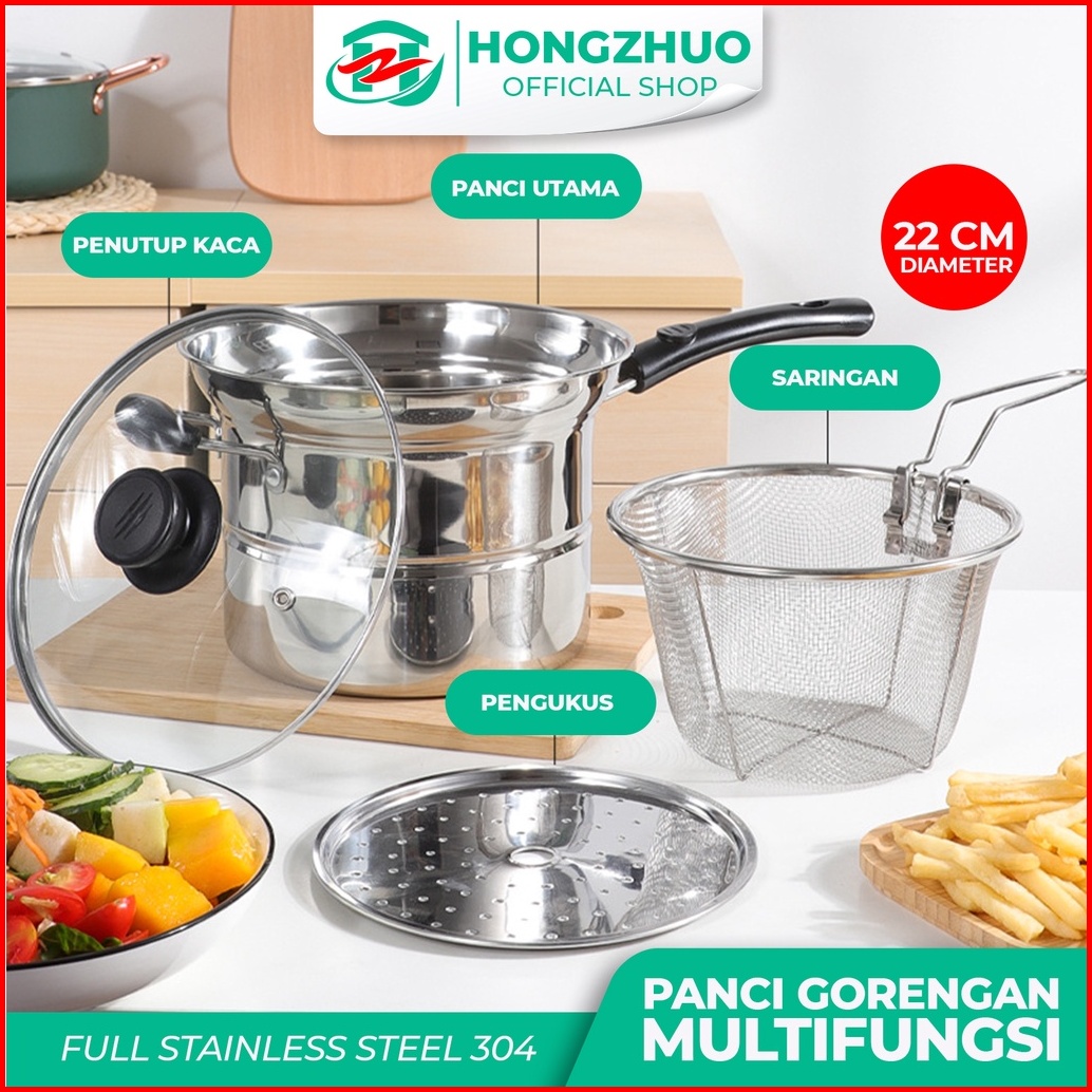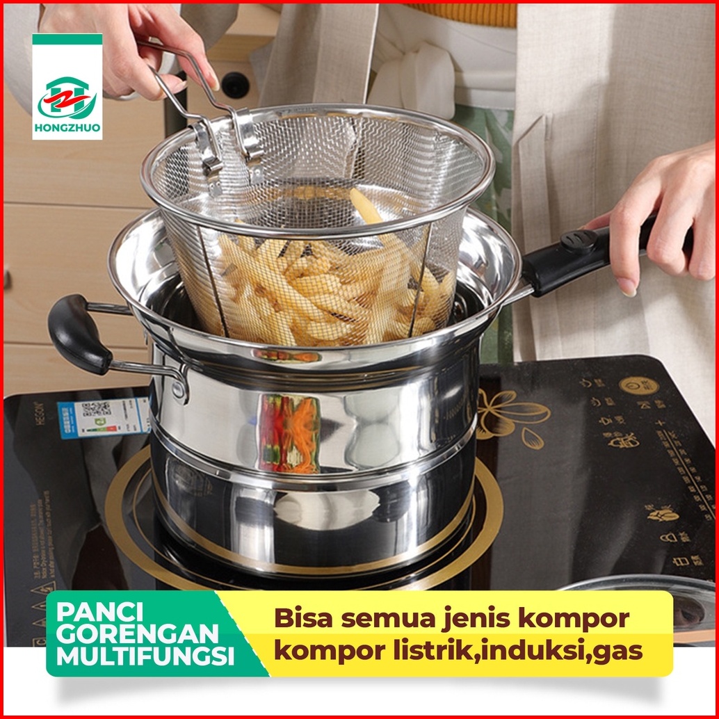 Hongzhuo Panci 3 In 1 Kukus Rebus Goreng Deep Fryer Alat Masak Serbaguna Panci Kentang Aneka Masakan Crispy Multi Pot 22