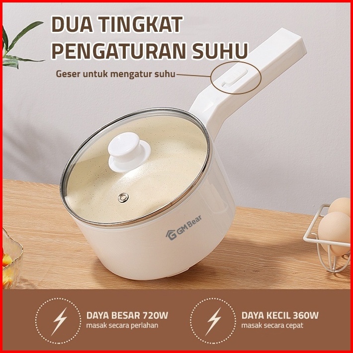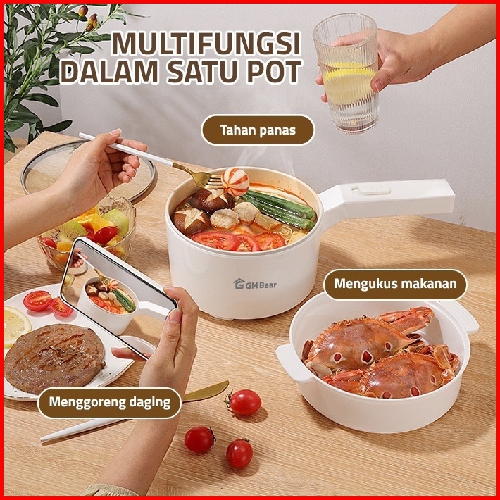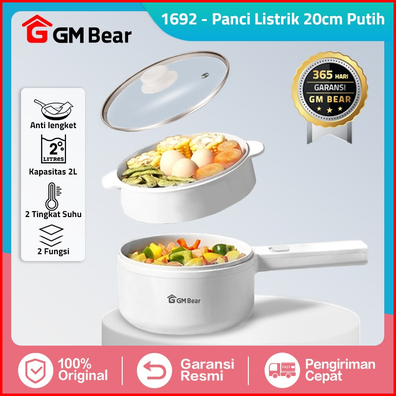 Gm Bear Panci Listrik Fry Pan Electric 2in1 1692 - Panci Penggorengan Keramik Elektrik Free Steamer
