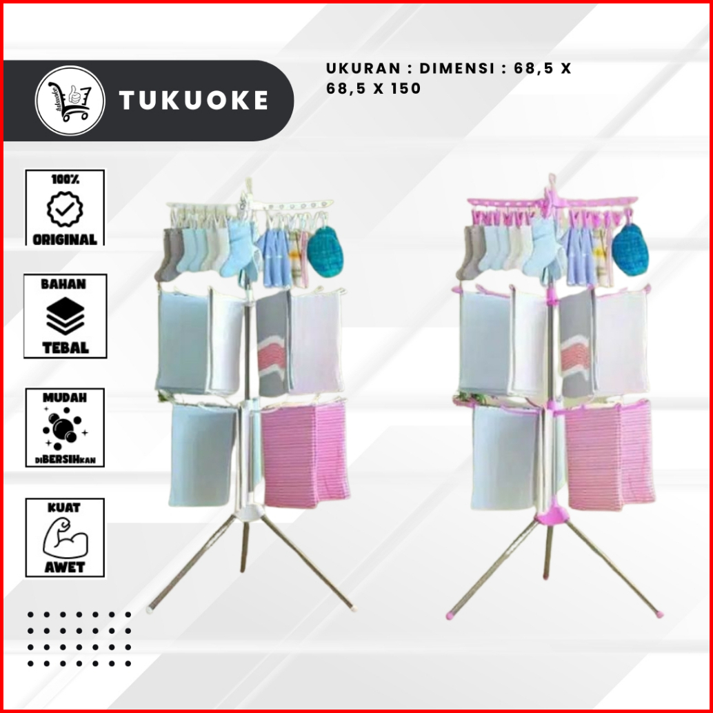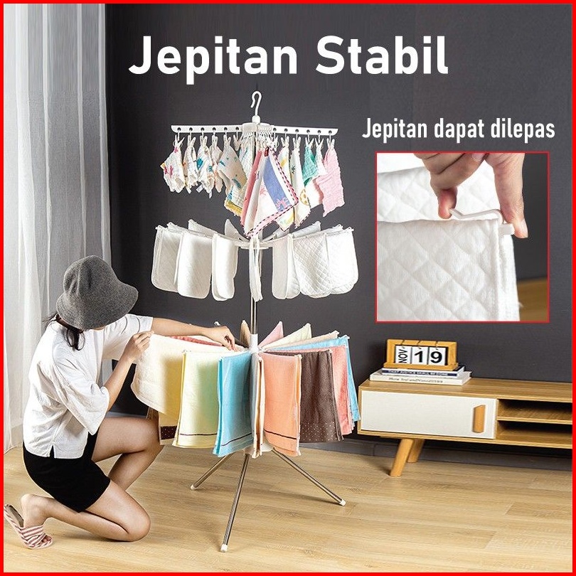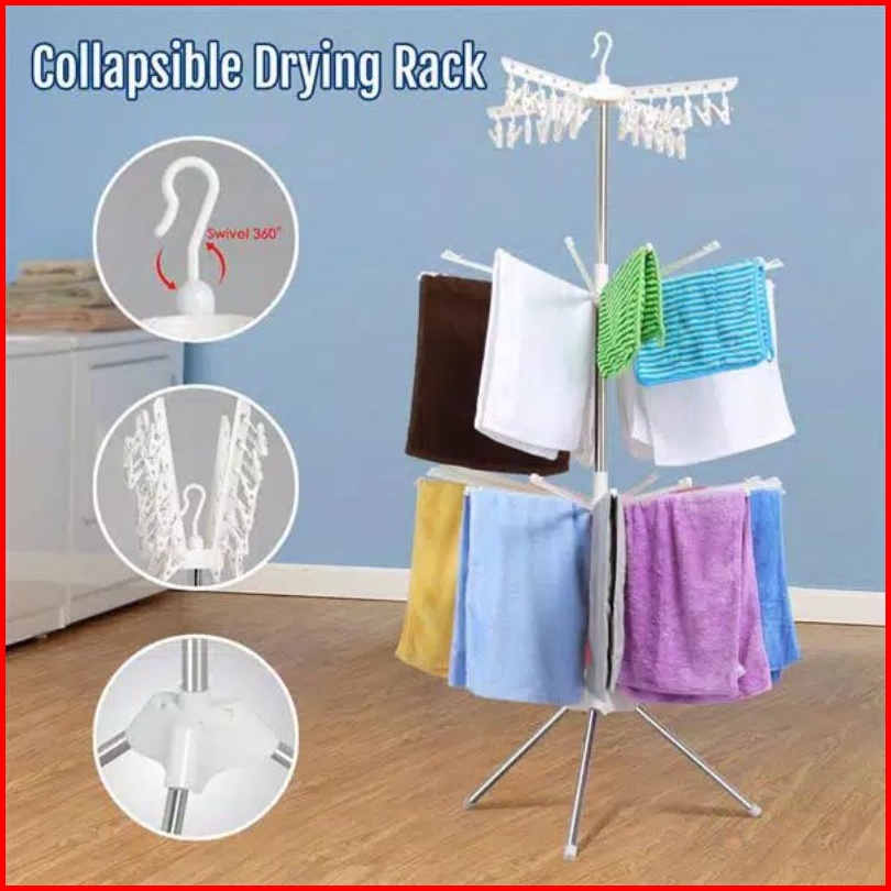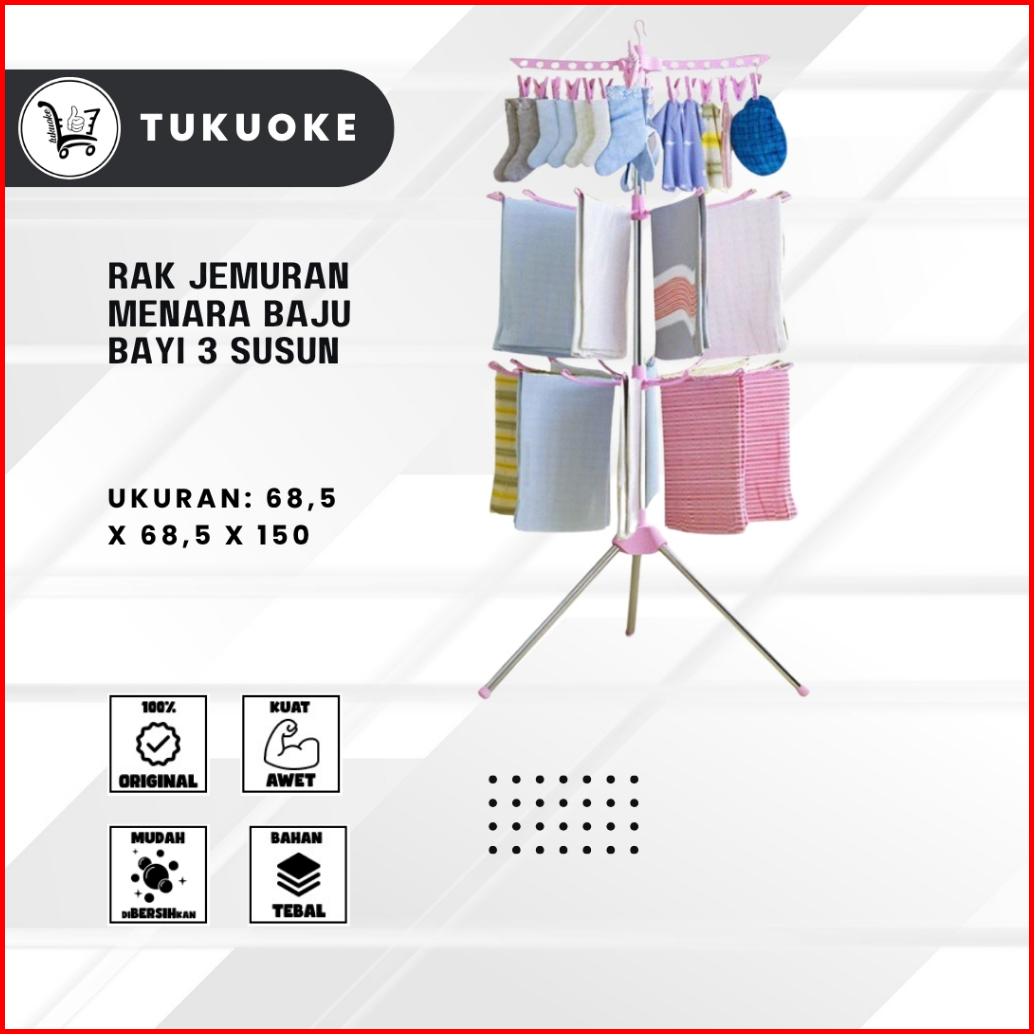 Rak Jemuran Menara Baju Bayi 3 Susun Tripod Dengan Hanger Rotasi Bisa Berputar Rotasi Jemuran Anakkk