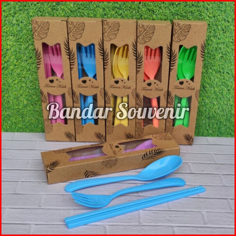 Isi 50 Travel Set Sendok Tebal Garpu Sumpit Dikemas Box Gratis Kartu Terimakasih Souvenir Pernikahan Kualitas Grade A