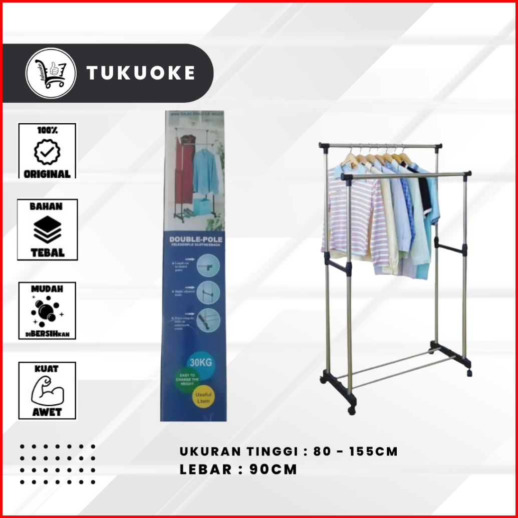 Jr-05 Jemuran Baju Double Pool Rak Besi Stainlees Jemuran Pakaian Stand Hanger Besi Stainleess
