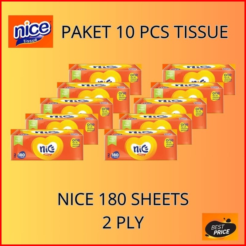 Paket 10 Pcs Tissue Nice Facial 180 Sheets 360 Helai 2 Ply Tisu Tisue Wajah