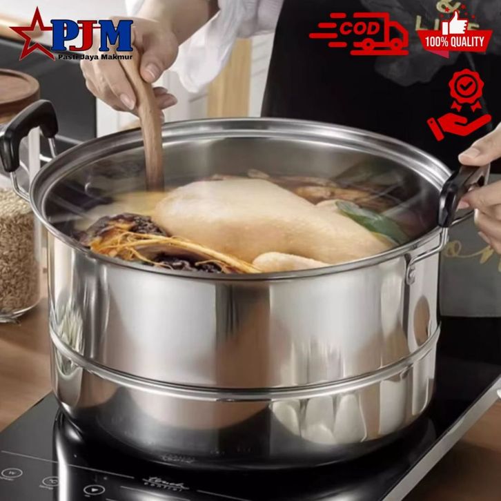 LANGSENG PANCI KUKUS REBUS GORENG DOBEL LAYER 3 IN 1 BAHAN STAINLESS STEEL BERKUALITAS TERMURAH TERLARIS BEST SELLER