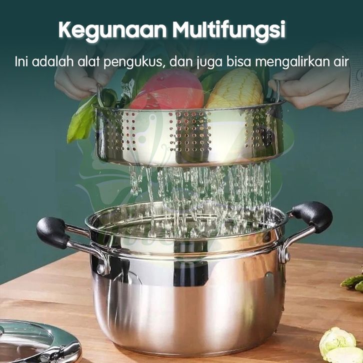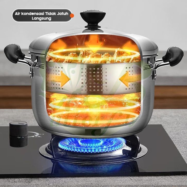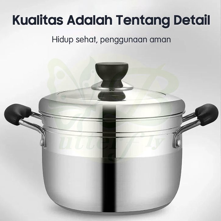 Panci Dandang kukusan tutup kaca ukuran besar 2 Susun Stainless Steel Steamer BAHAN BERKUALITAS TERMURAH TERLARIS BEST S