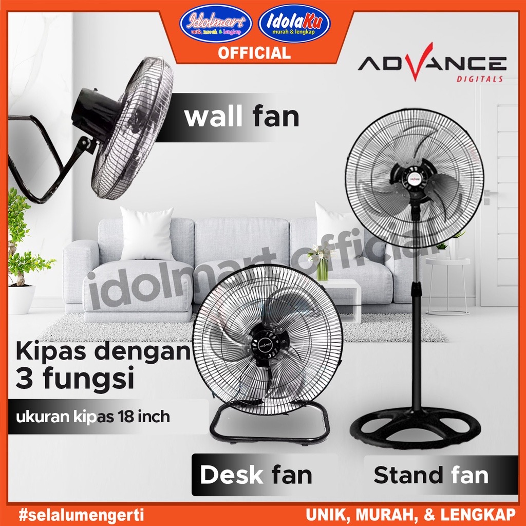 GARANSI 1 TAHUN KIPAS ANGIN ADVANCE TDS 18 inchi 3 in 1 MULTIFUNGSI KIPAS ANGIN BERDIRI DUDUK DINDING TERMURAH