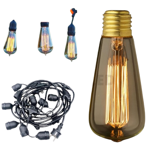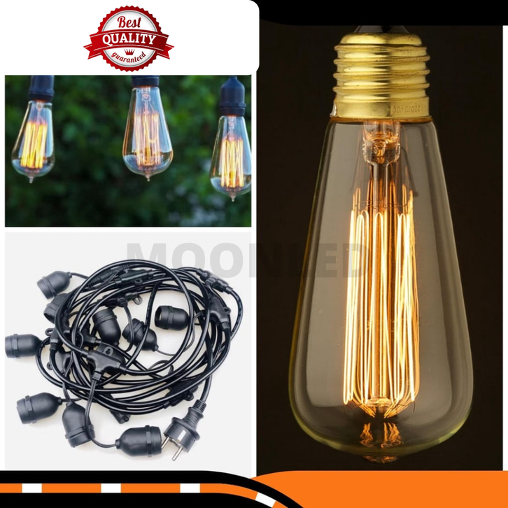 PAKET Lampu Gantung 10 METER 10 FITING + 10 BOHLAM FILAMEN 4 WATT ST64