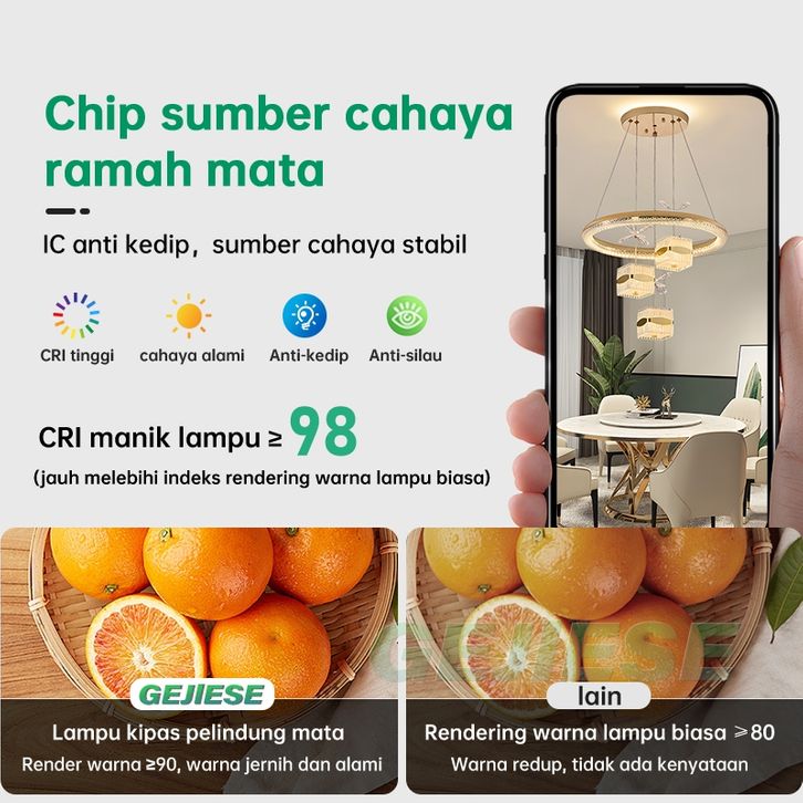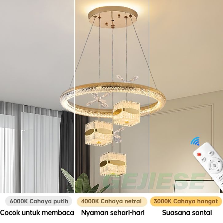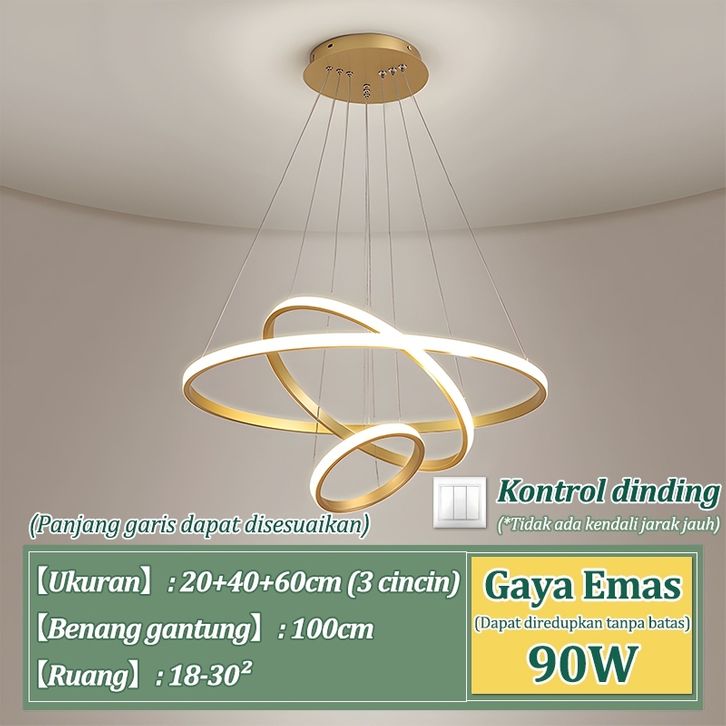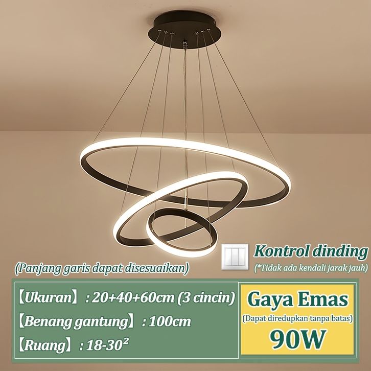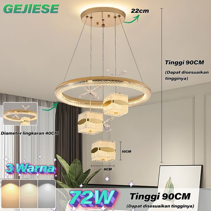 Lampu Gantung Kristal Minimalis 72W Led 3 Warna 40CM Rings Lampu Gantung Ruang Tamu
