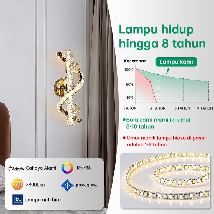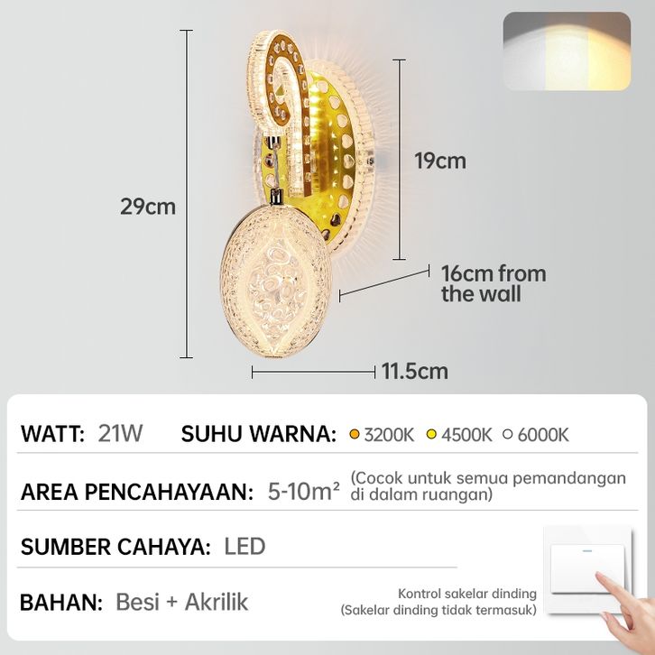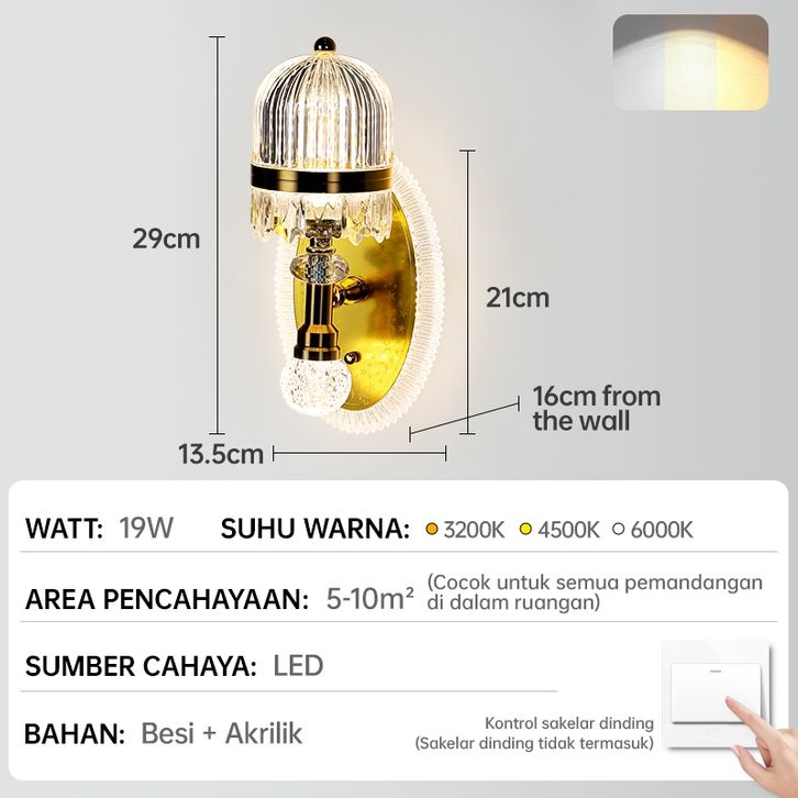 Lampu Dinding Kristal Minimalis 3 Warna Ruang Tamu Kamar Tidur Lampu Dinding Kristal Hias