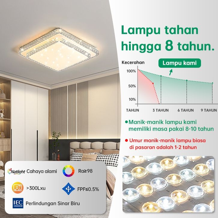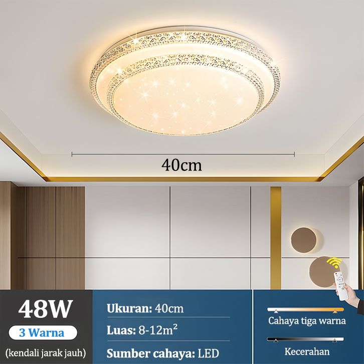 Lampu Plafon Kristal LED Persegi Bulat Dua lapisa Lampu Gantung Ruang 3 Warna Tamu Kamar Tidur 36/48 Watts