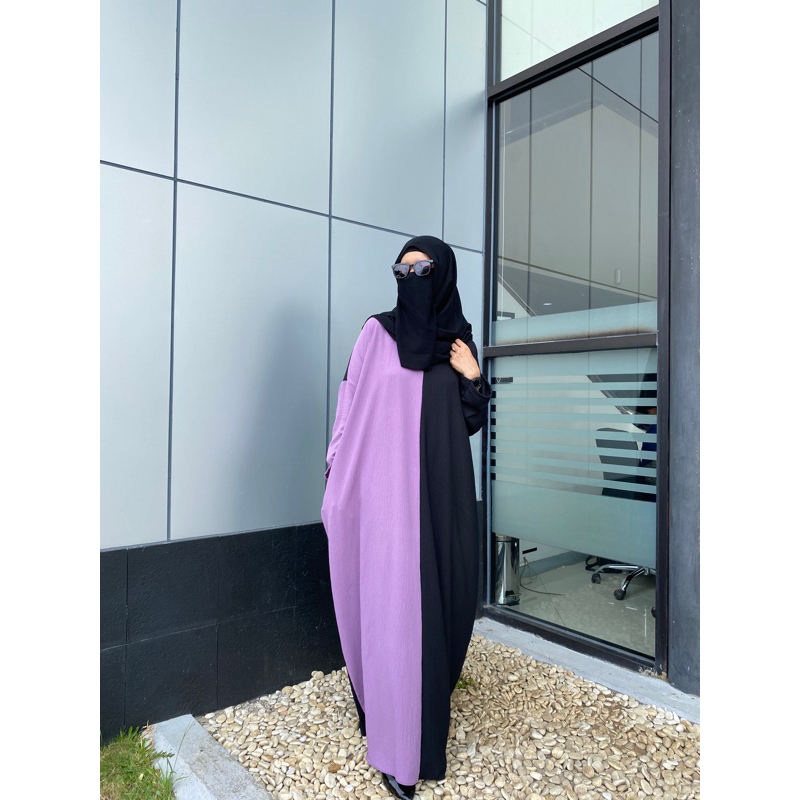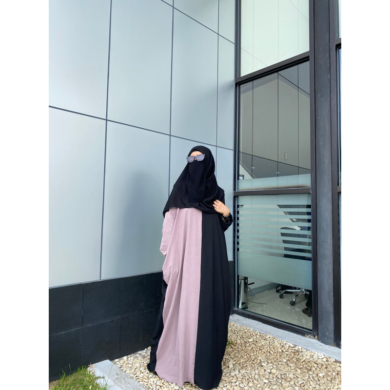 ABAYA NAZIRA GAMIS CRINKLE AIRFLOW POLOS KOMBINASI 2 WARNA KAFTAN BASIC TURKEY TURKI
