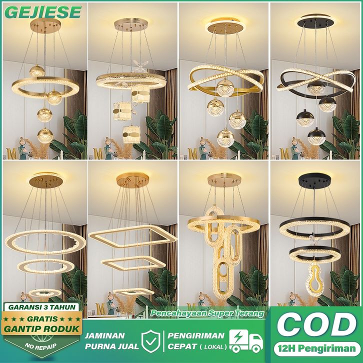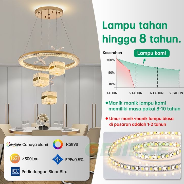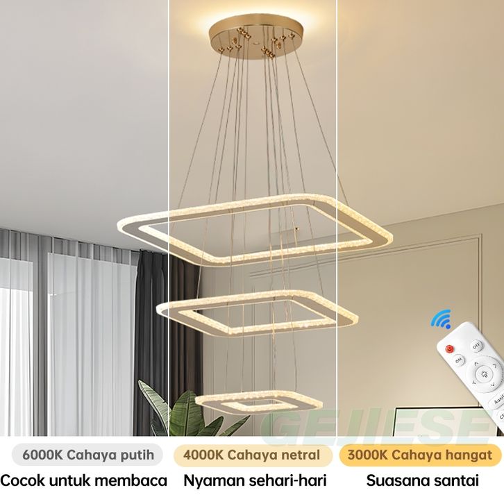Lampu Gantung Kristal Modern 72W LED 3Warna Dapat Disesuaikan Lampu Gantung Ruang Tamu Hias