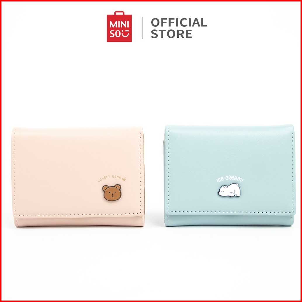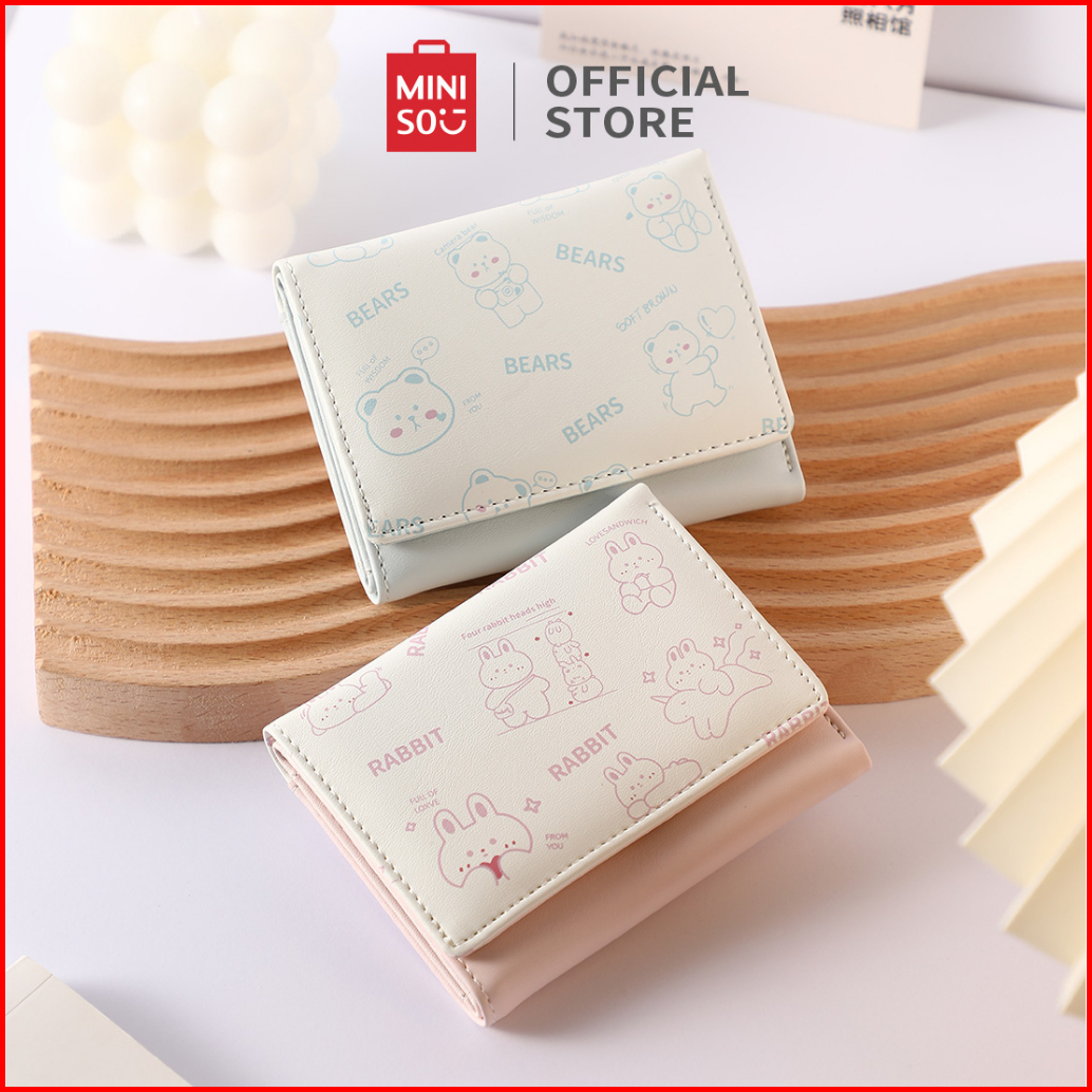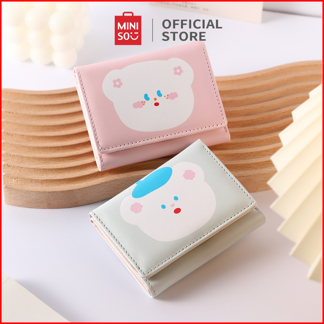 Miniso Dompet Wanita Women S Trifold Wallet Pendek Wanita Lipat Tiga Seru Hewan Rancangan Mode Muda Bit Kartu Kapasitas