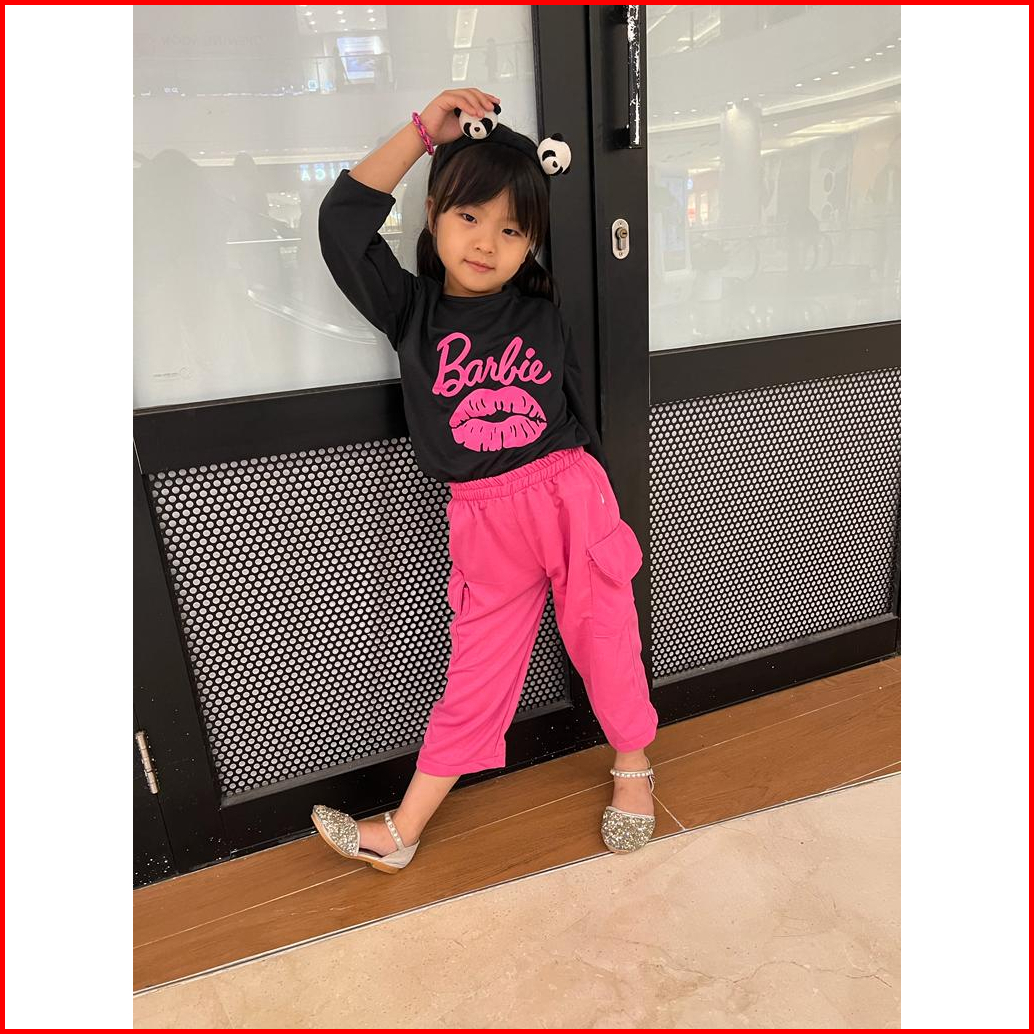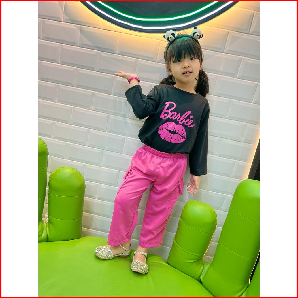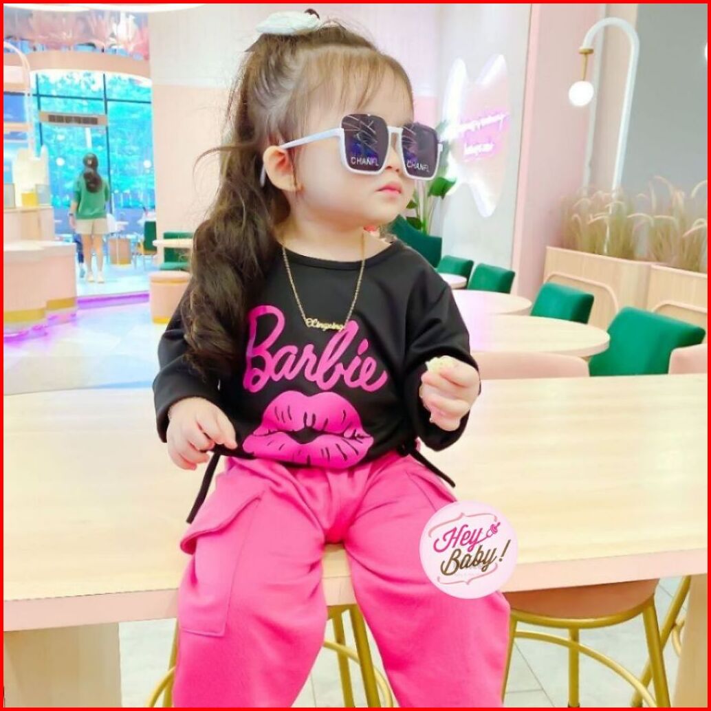 Promo 9.9 Heybaby Set Barbie Lips Setelan Baju Serut Anak Bayi Perempuan Celana Cargo Set Anak Perempuan Atasan Serut