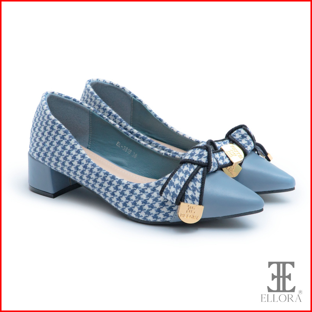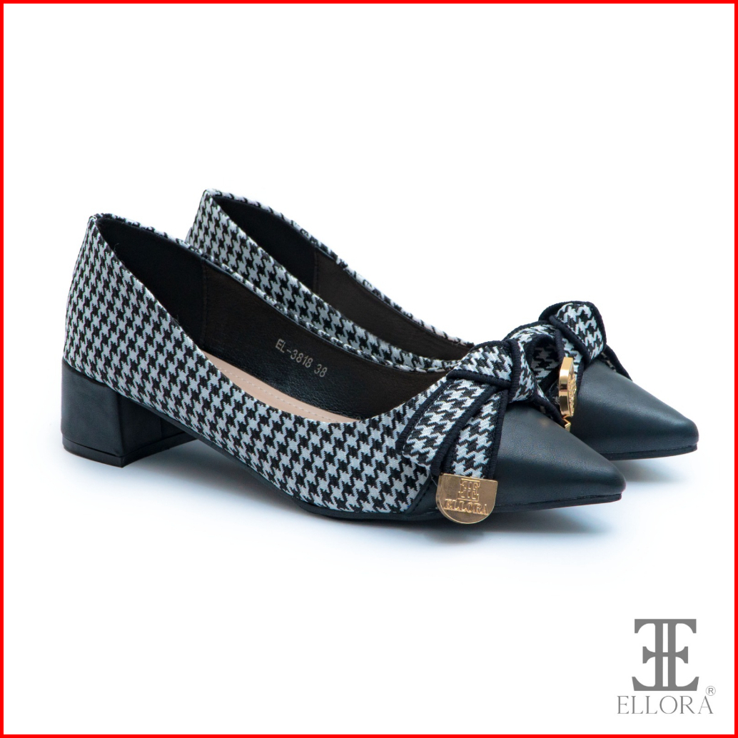 Ellora El-3818 Sepatu Kerja Wanita Hak Chunky Heels 4cm Import Bahan Woven