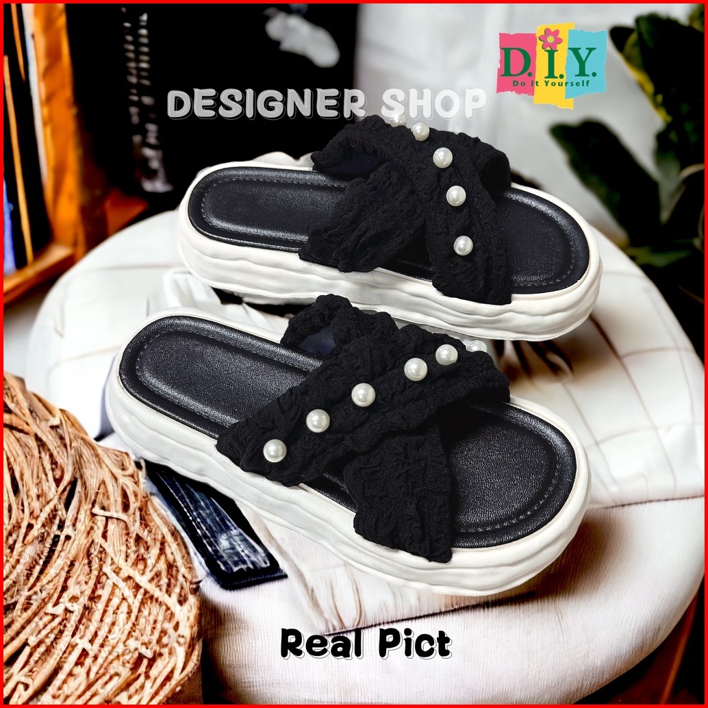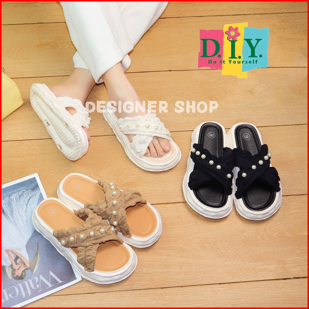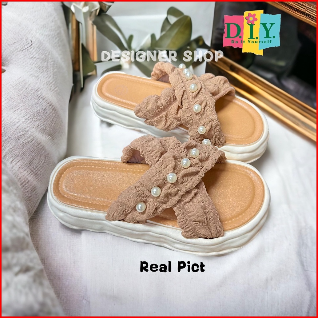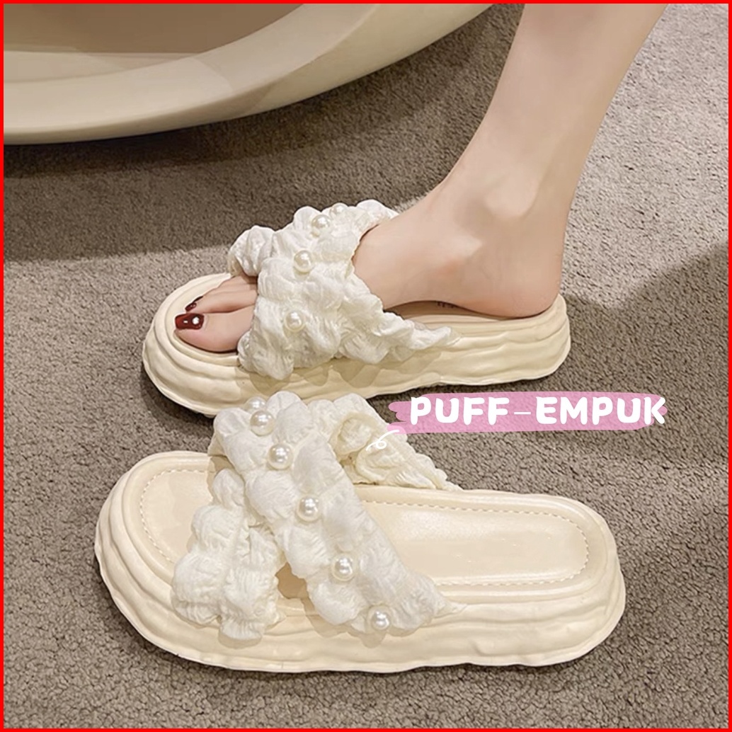 Sandal Wanita Jelly Terbaru 2024 Mutiara Puff-empuk