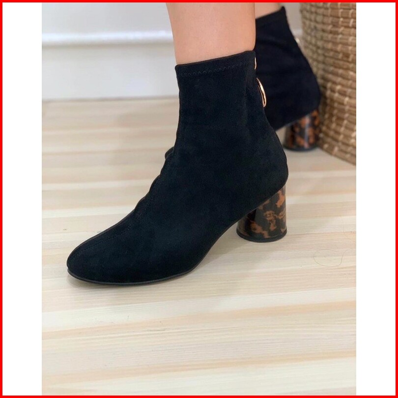 Sepatu Boots Wanita Tortoiseshell Mid Heels Ankle Zs270