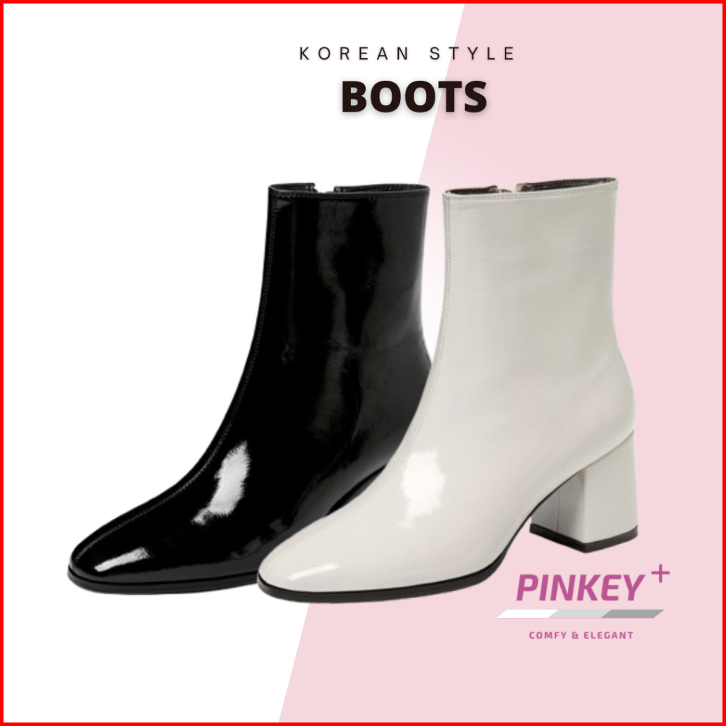 Pinkey P042 Sepatu Glossy Heels Boots Resleting Kulit Wanita Premium Quality