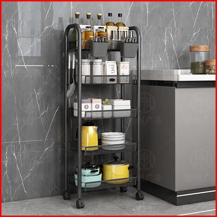 Zenrak Lantai Beroda Rak Penyimpanan Serbaguna Rak Ruang Tamu Tingkat Putih Rak Salon