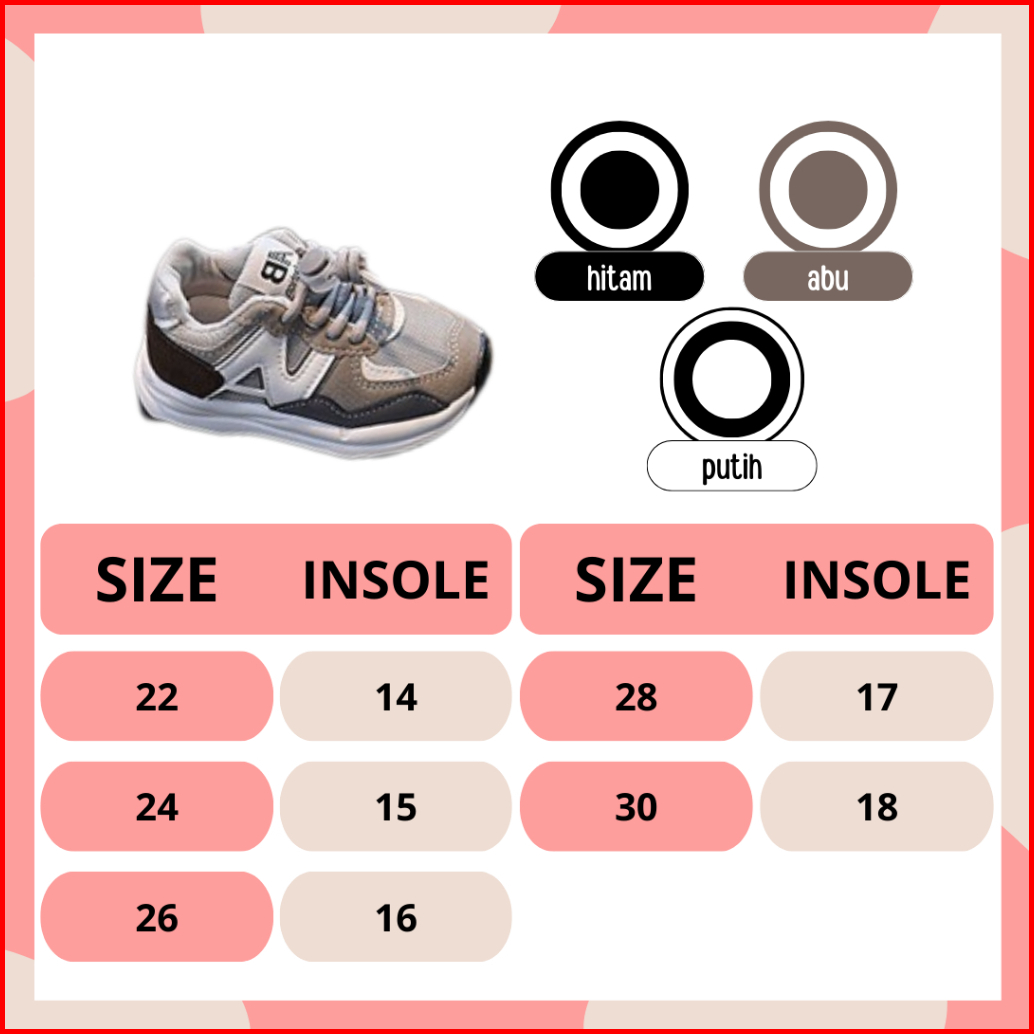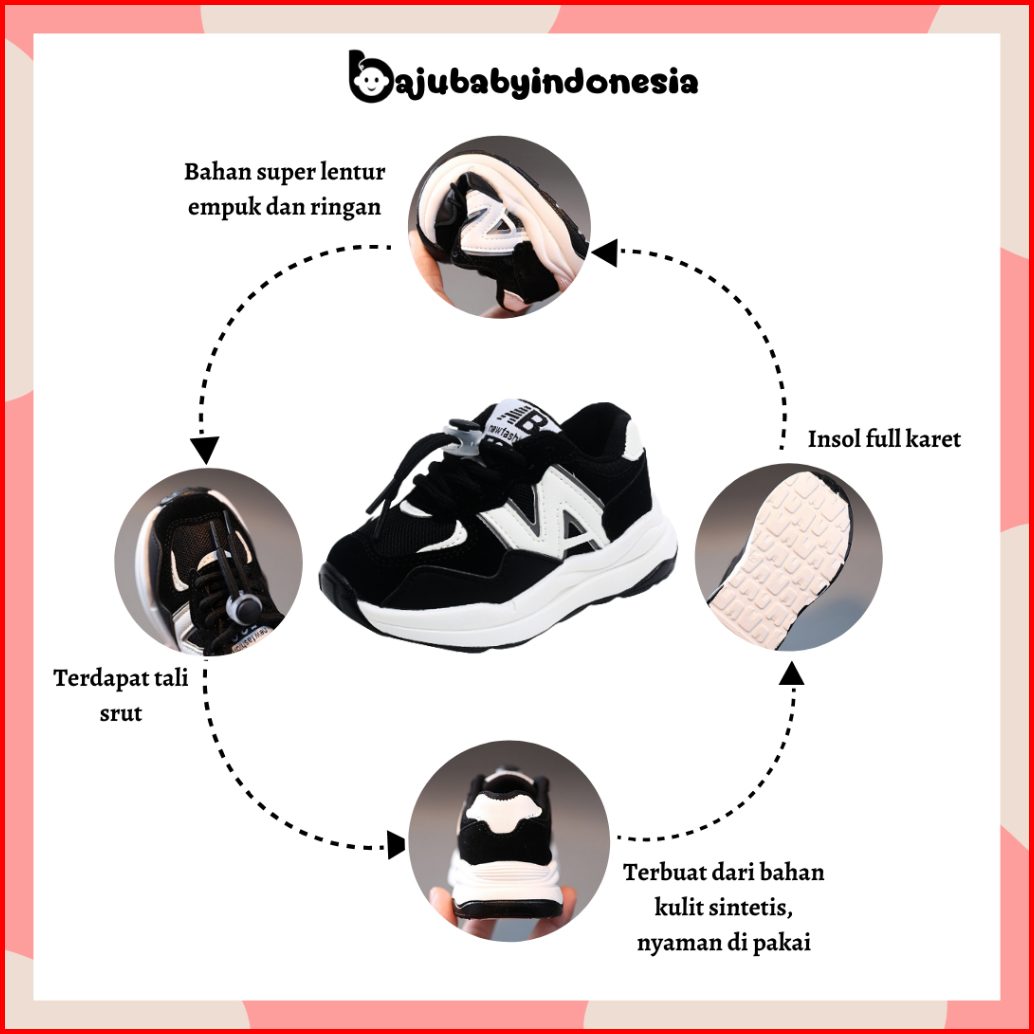 Bbi Nana Sepatu Anak Laki Laki Perempuan Sneakers Bayi Cewek Cowok Kets Balita Ringan Model Tali Bahan Empuk Anti Slip K