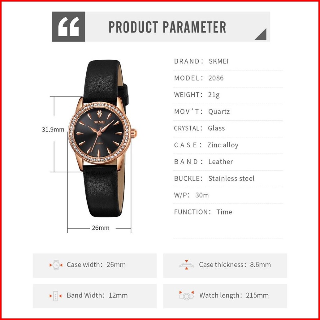 Jam Tangan Wanita Analog Skmei 2086 Leather Strap Tahan Air Original