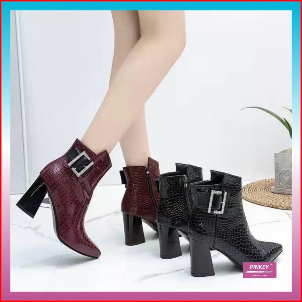 Pinkey P047 Sepatu Boots Hak Tinggi Resleting Wanita Model Terbaru