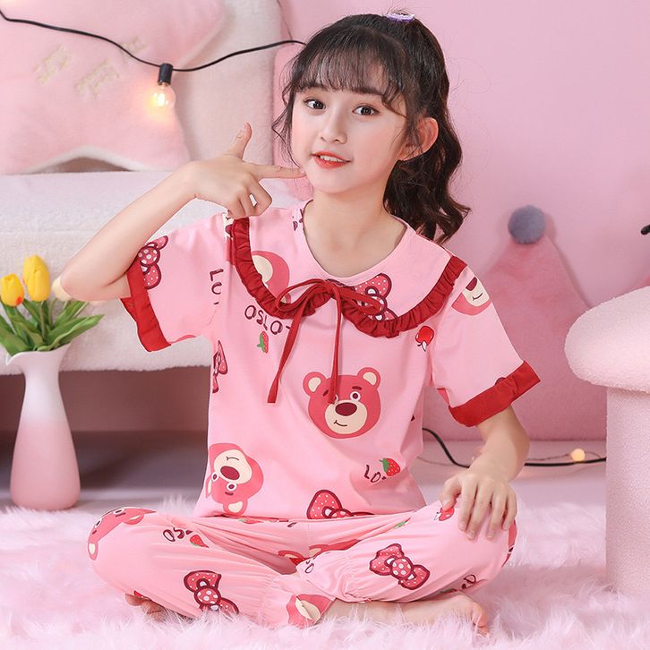 Setelan Baju Tidur Piyama Anak Perempuan Lengan Pendek Celana Panjang Katun Lotso LP05 3 4 5 6 7 8 9 10 11 12 13 14Tahun