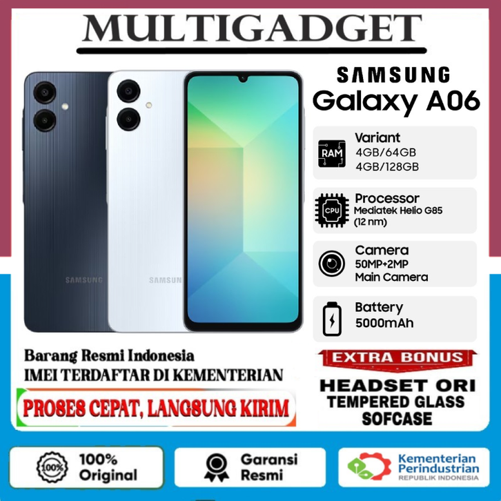 (ORI) SAMSUNG GALAXY A06 4/128GB 6/128GB GARANSI RESMI [Mediatek Helio G85, Camera 50MP, 500mAh]