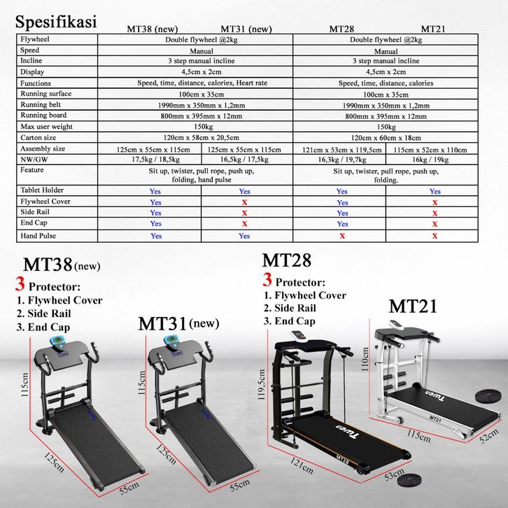 Treadmill Twen Mt21 Tanpa Listrik Treadmill Murah Manual Multi Fungsi Bergaransi Gratis Ongkir