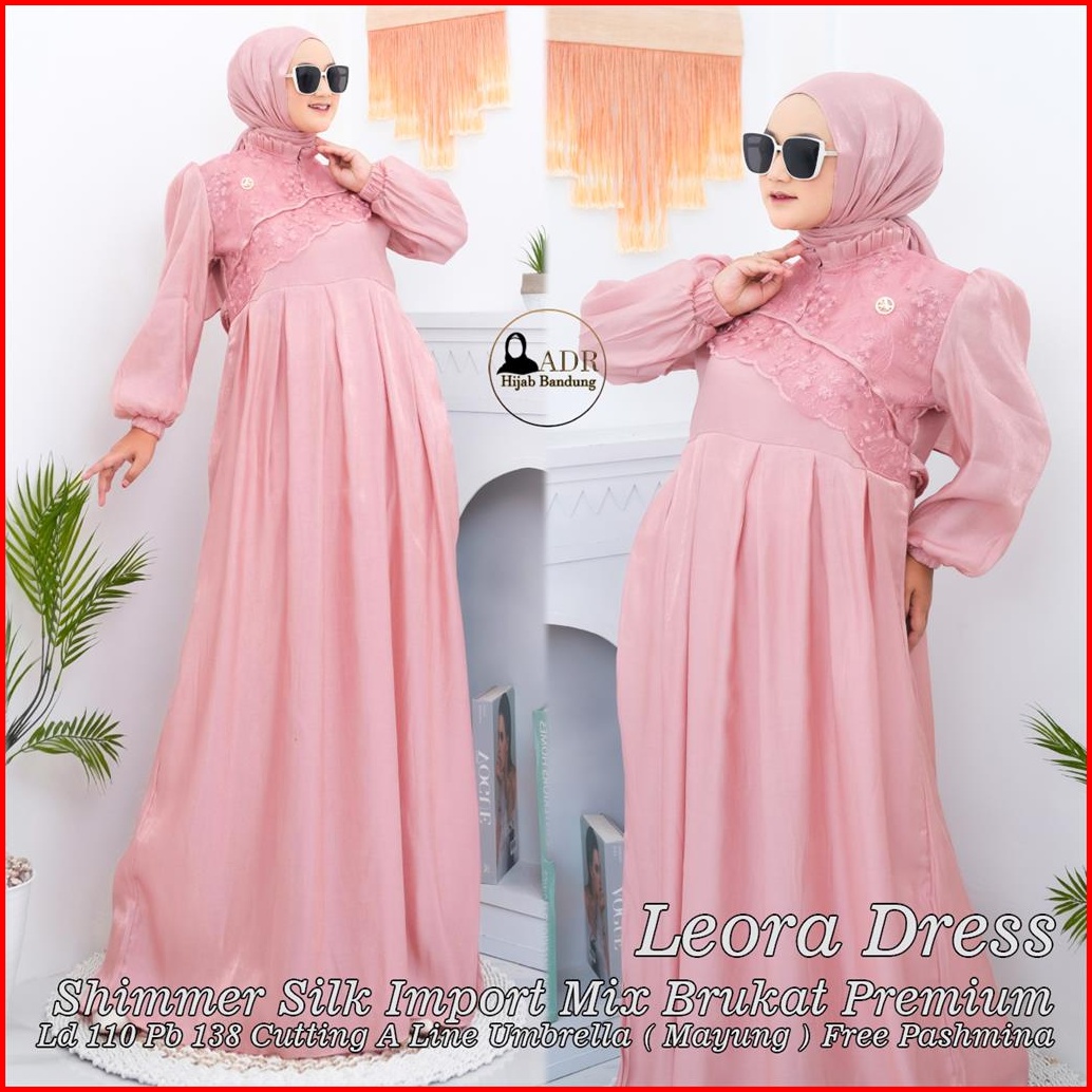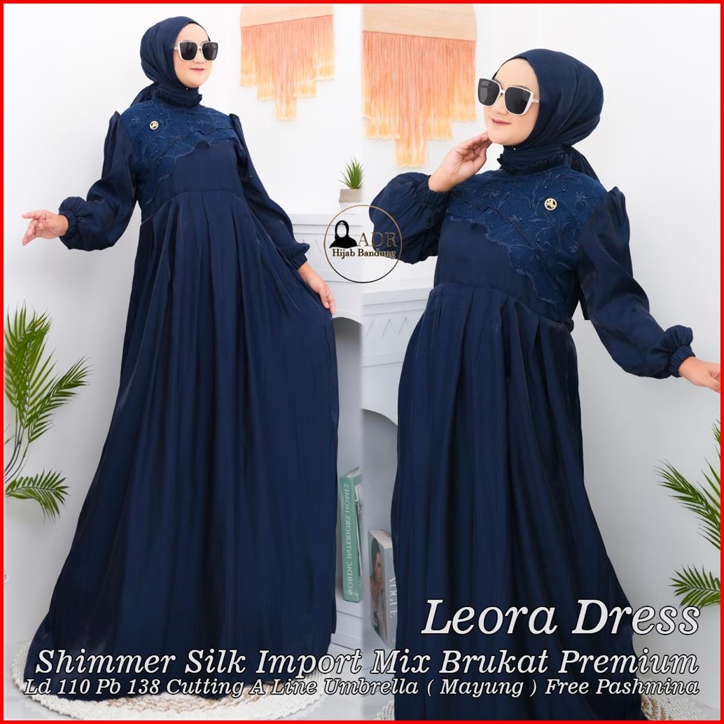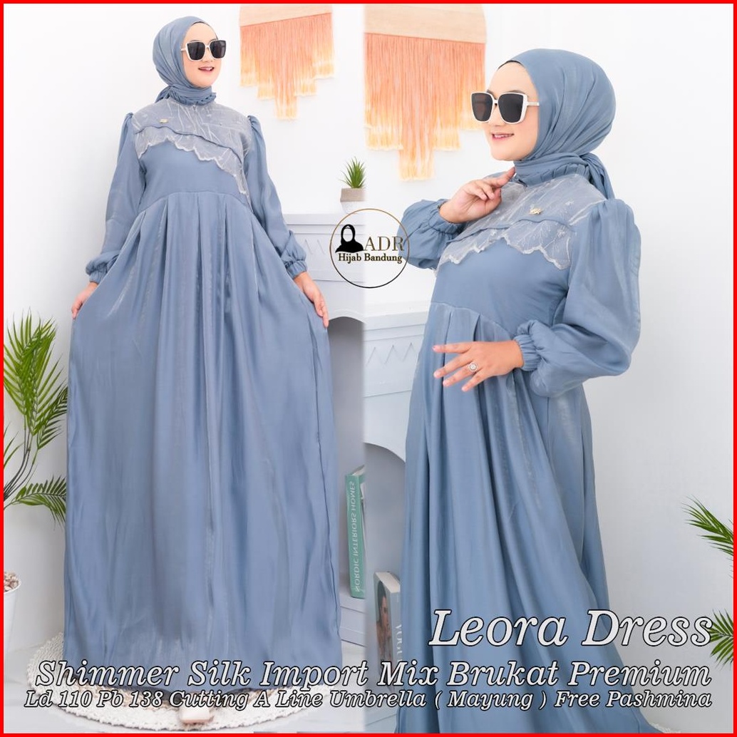 Dress Lesty Leora Dress Gamis Shimmer Silk Mix Brukat Premium Free Pashmina