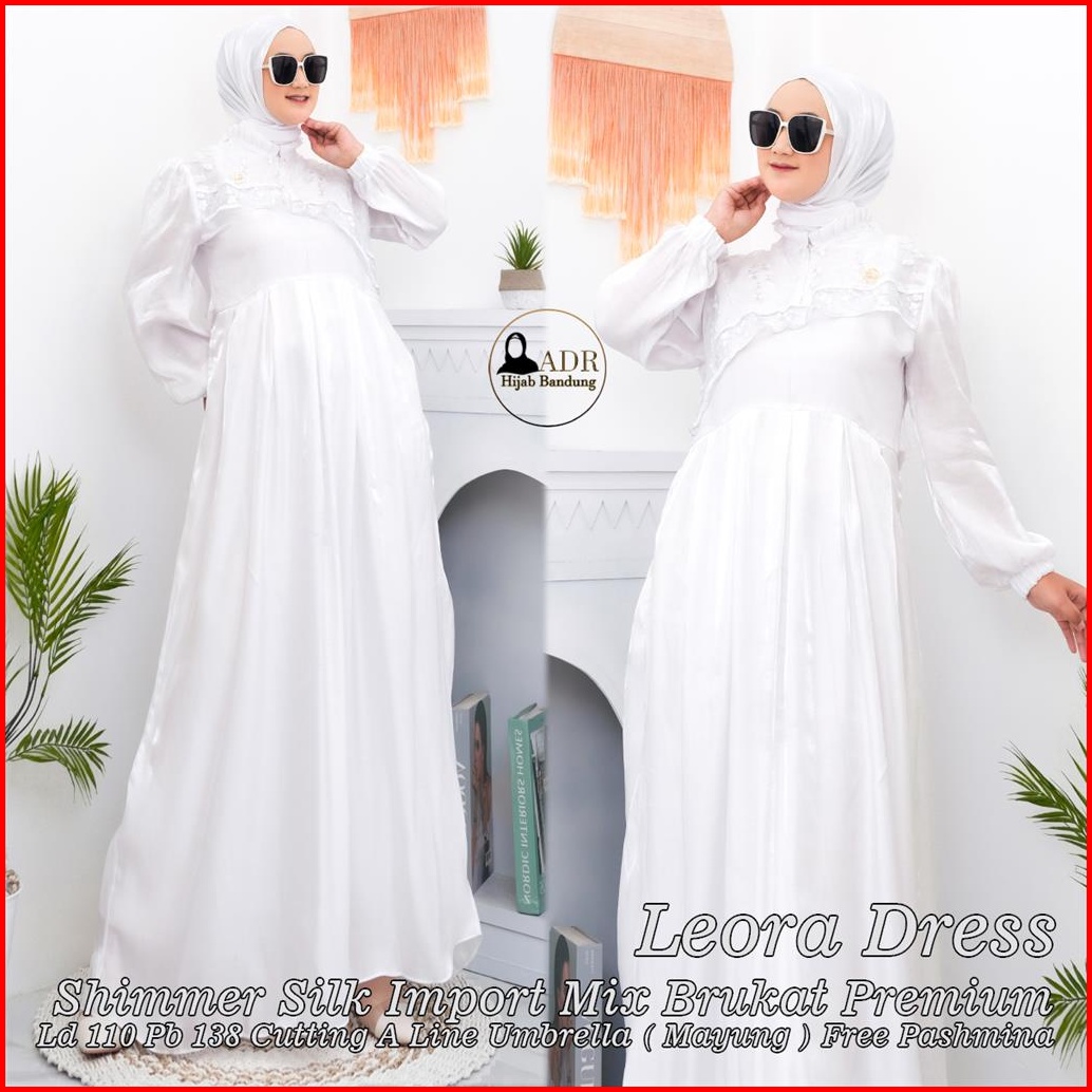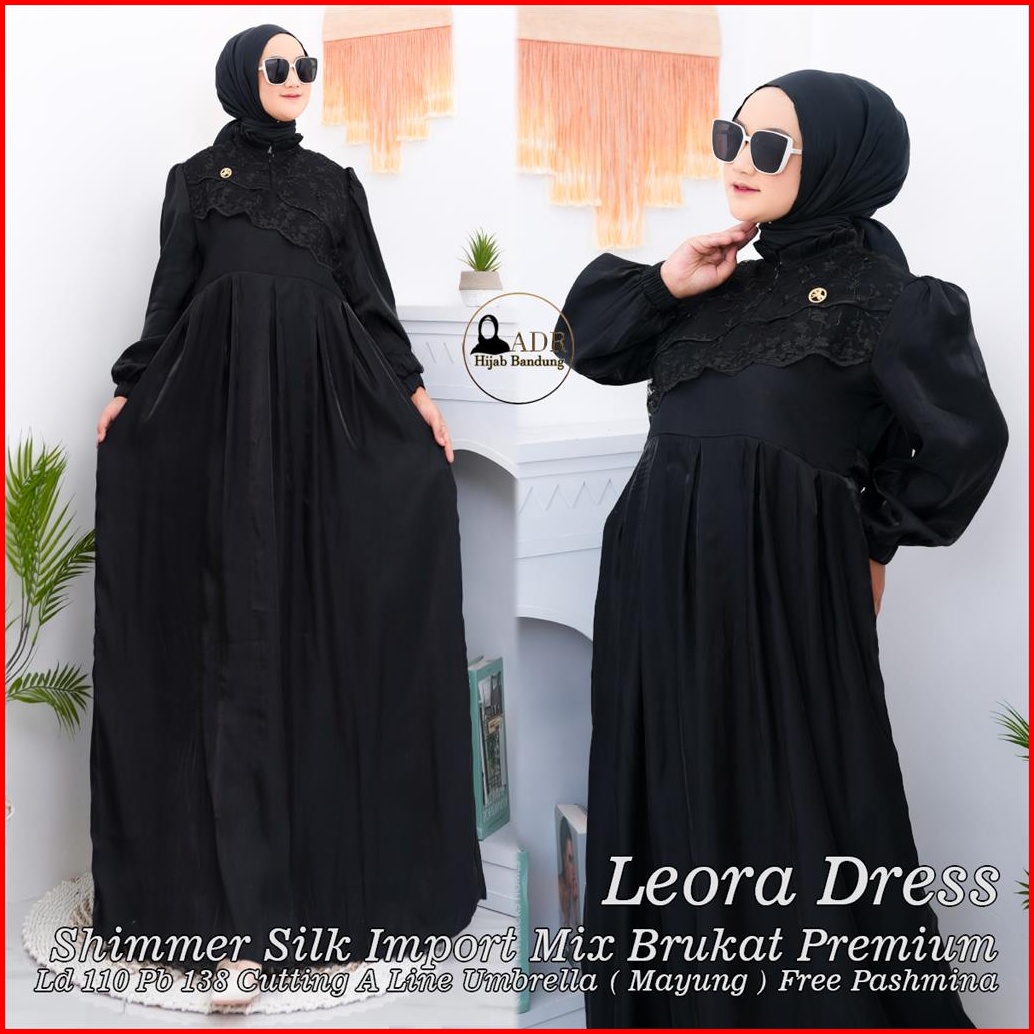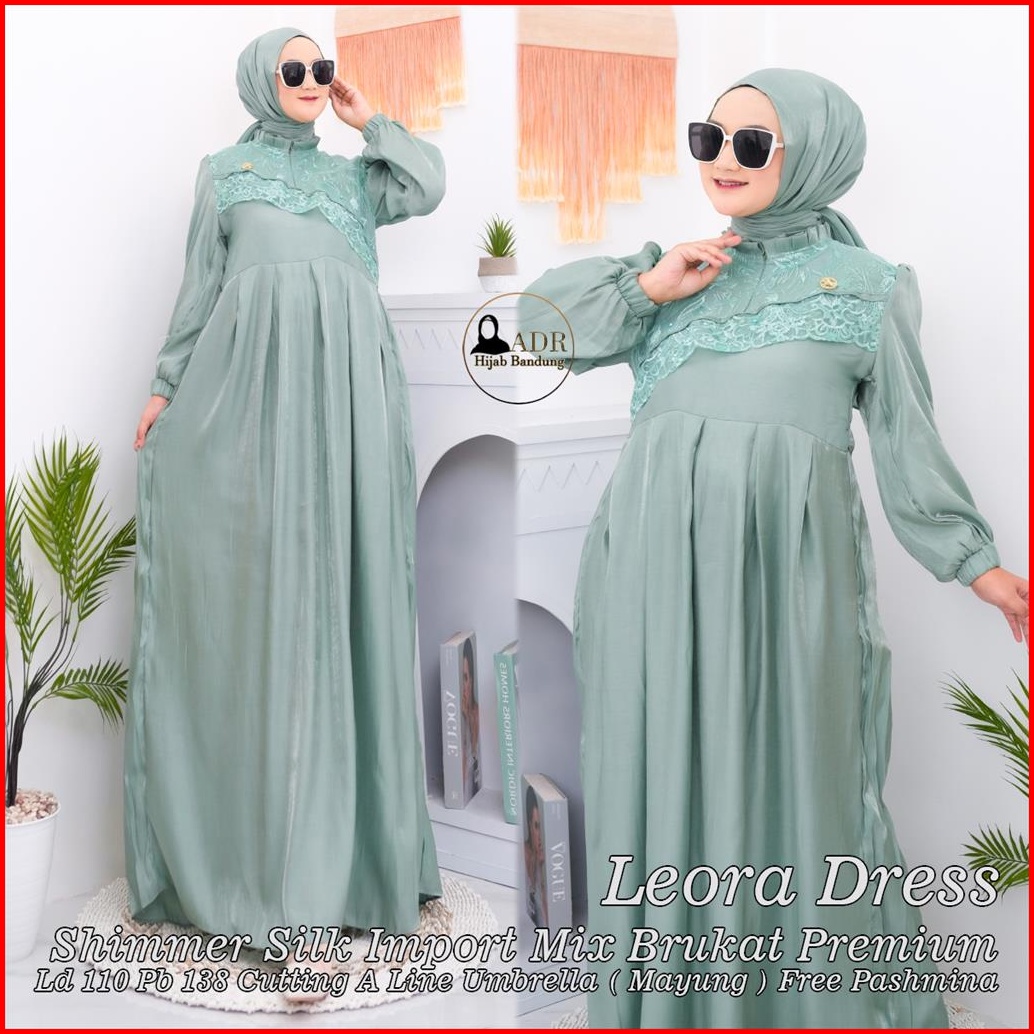 Dress Lesty Leora Dress Gamis Shimmer Silk Mix Brukat Premium Free Pashmina
