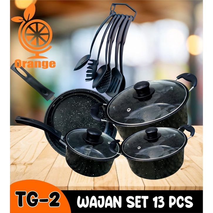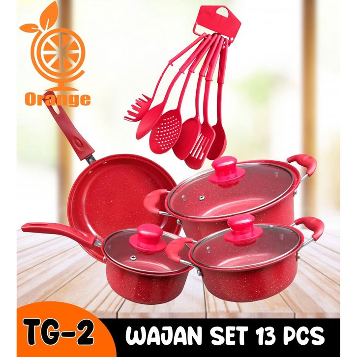 PAKET COOKWARE PANCI 13 SET IN 1 PAKET PERALATAN MASAK PANCI ENAMEL SET SPATULA DAN PANCI [PANCI 13 SET - PAKET COOKWARE