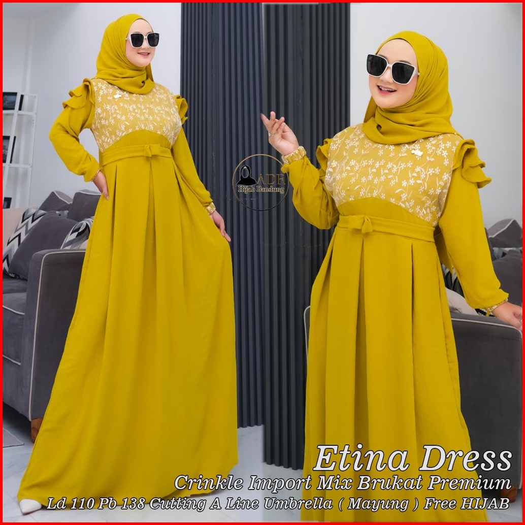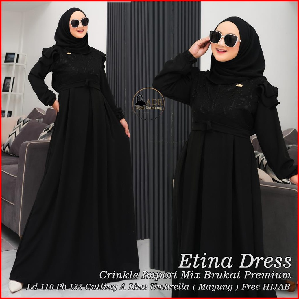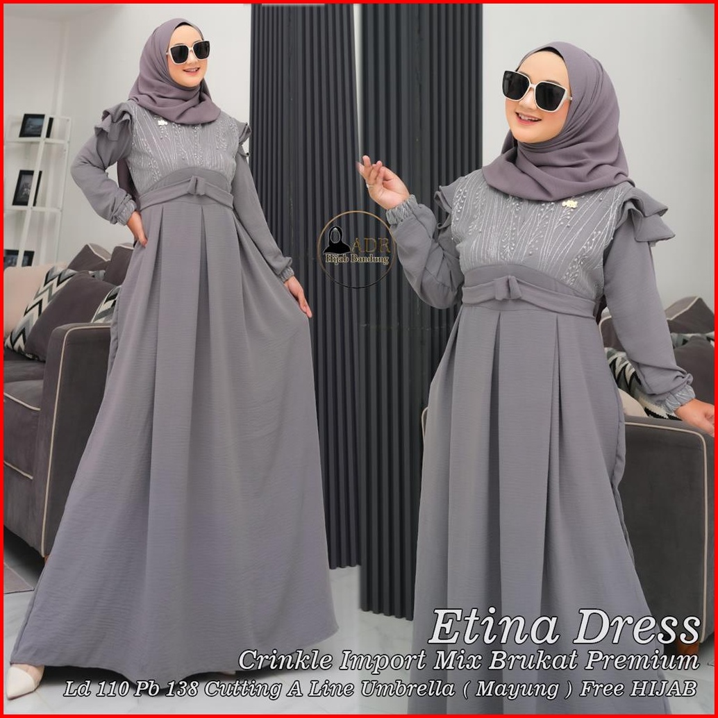 Gamis Balqis Amara Dress Etina Soft Crinkle Import Mix Brukat Premium Free Pashmina - Limited Edtion