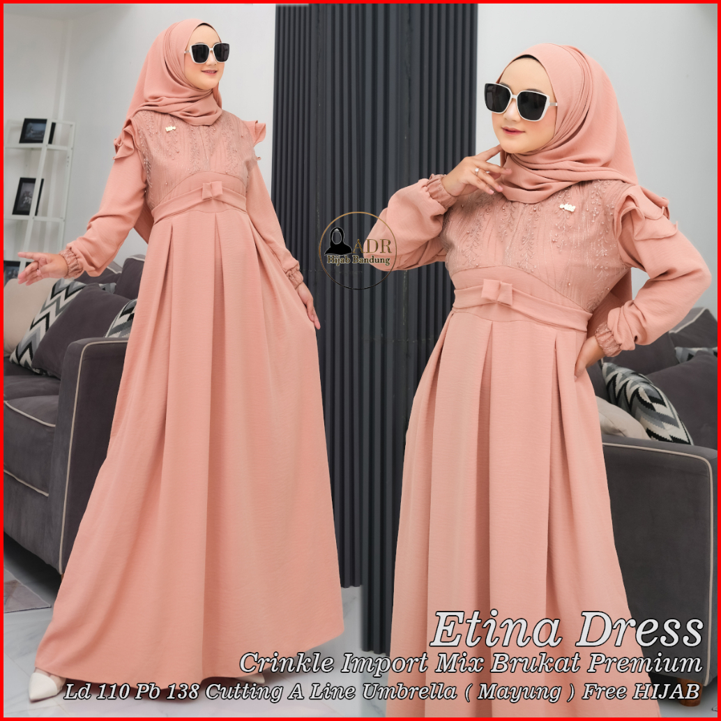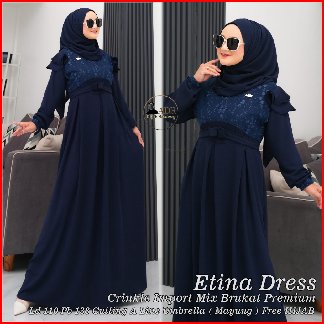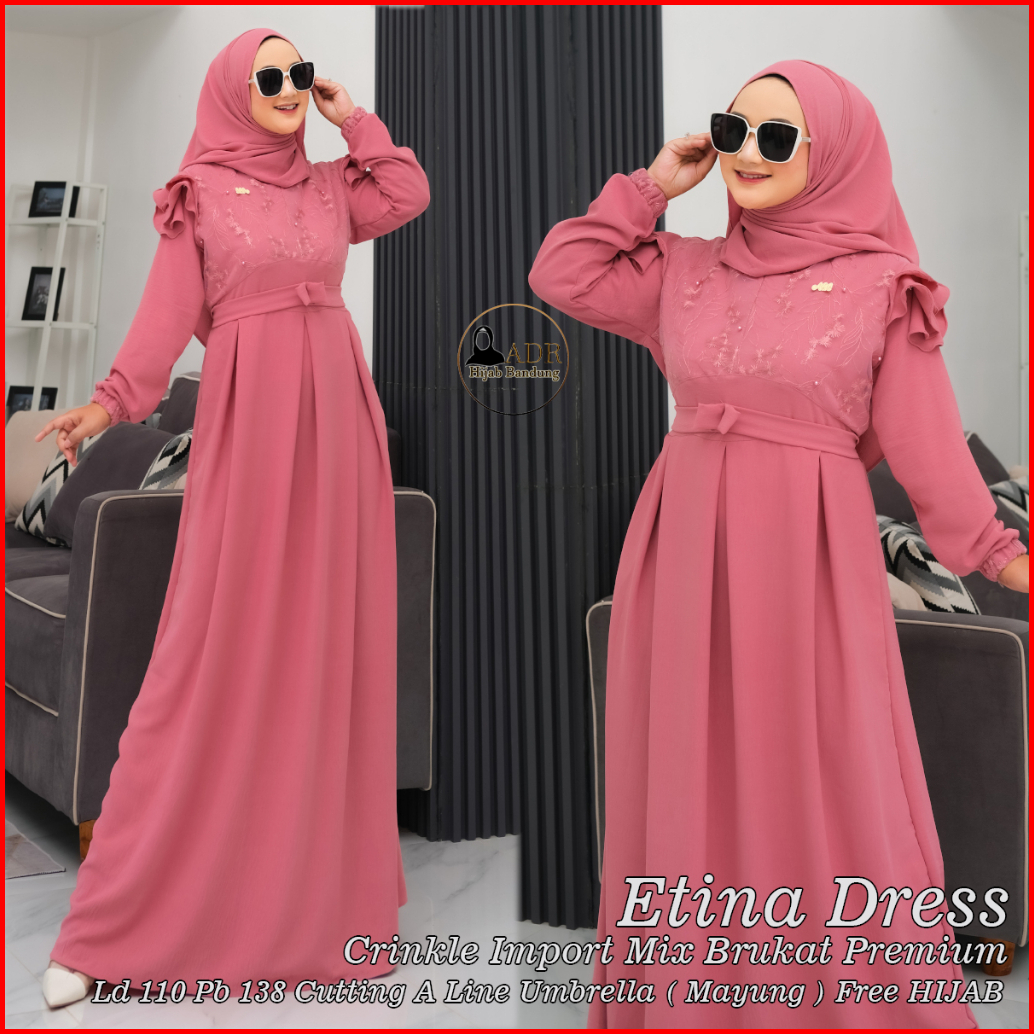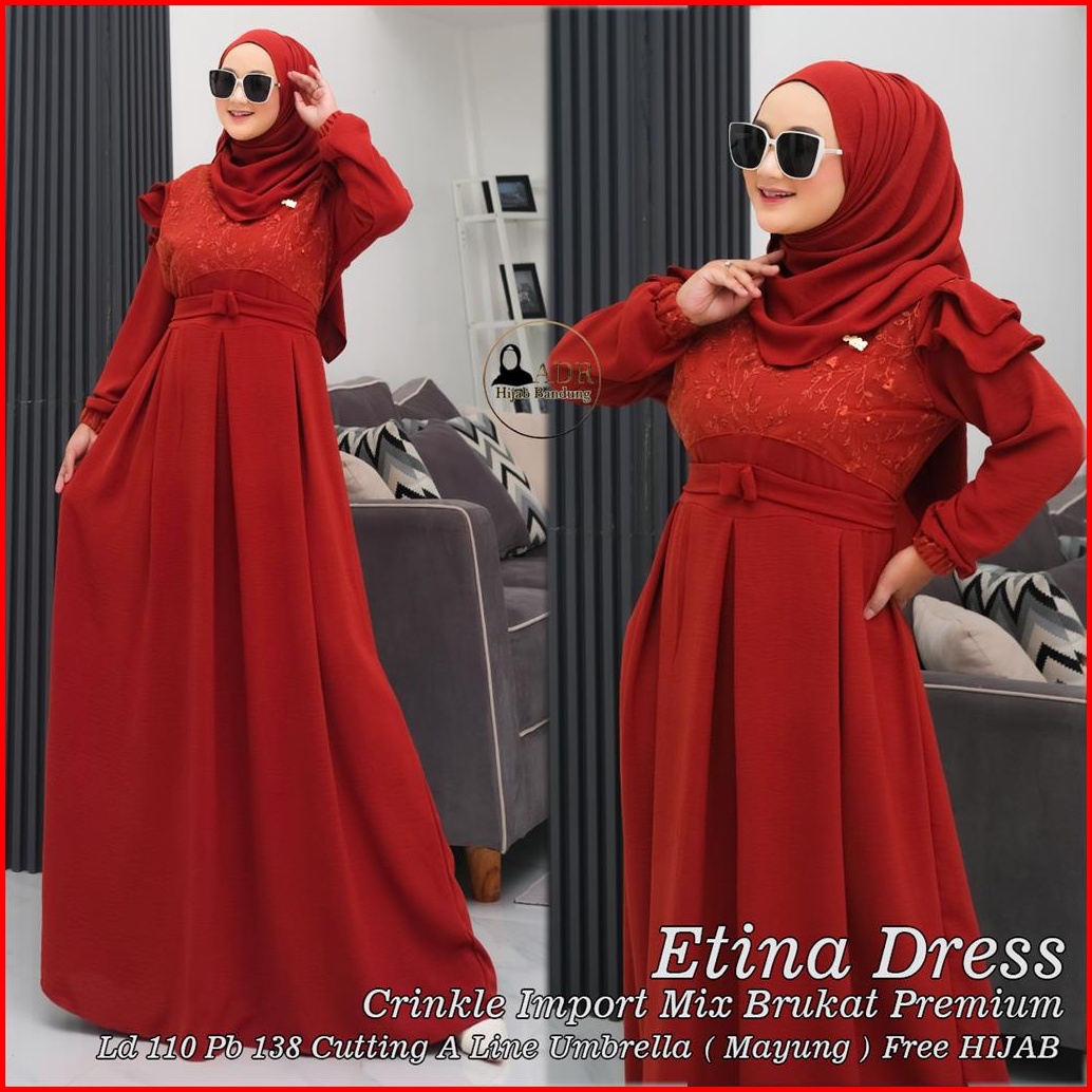 Gamis Balqis Amara Dress Etina Soft Crinkle Import Mix Brukat Premium Free Pashmina - Limited Edtion