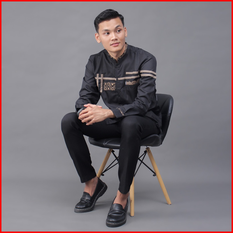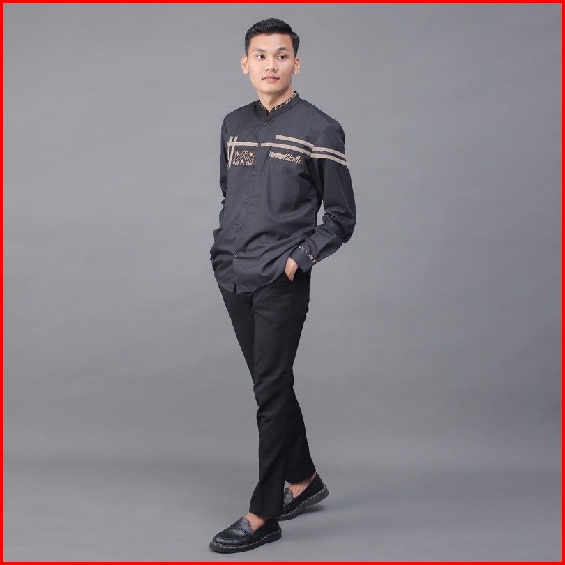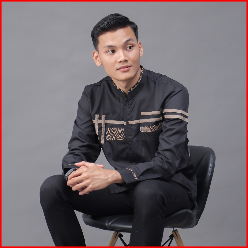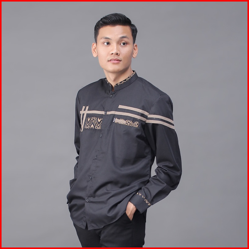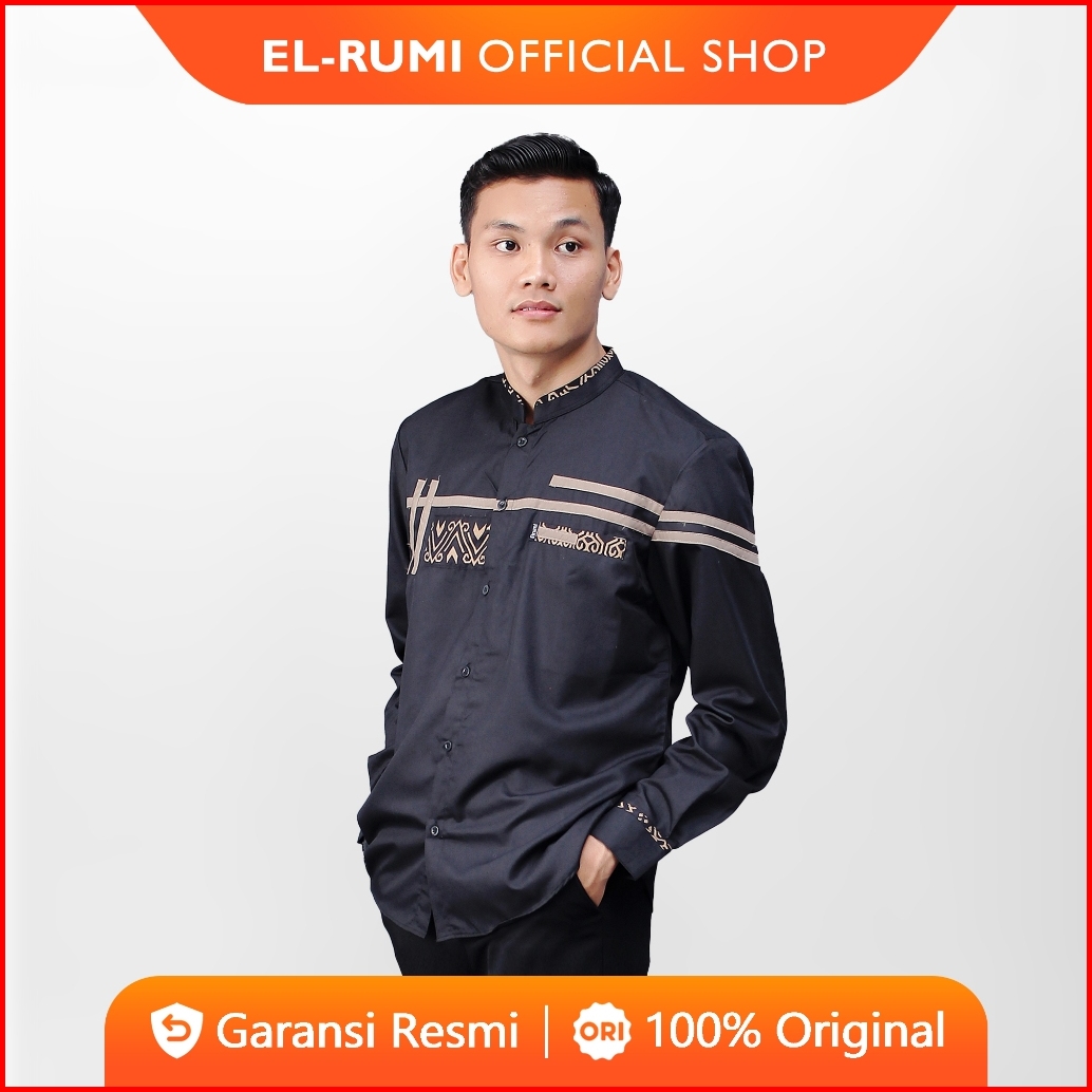 Baju Koko Pria Elrumi Lengan Panjang Motif Zolied Warna Hitam Kombinasi Batik