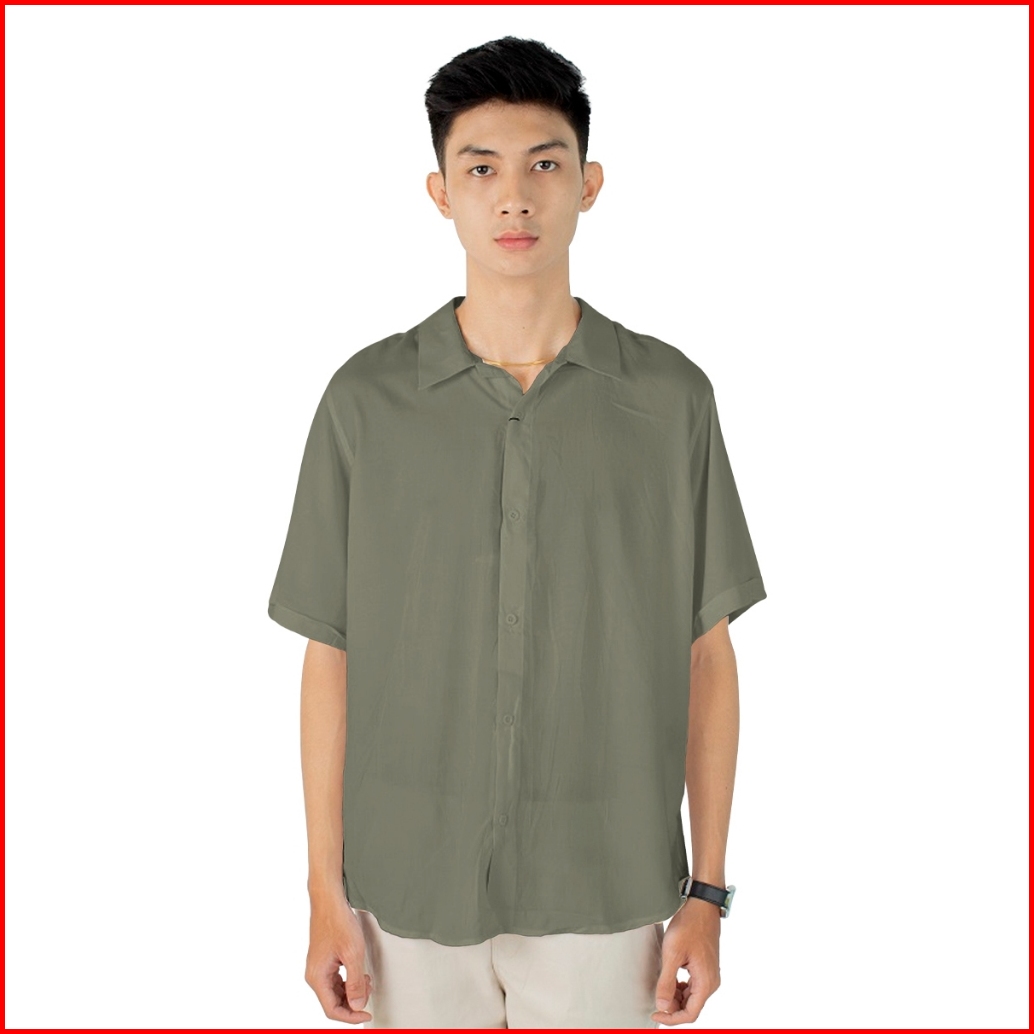 Fortklass Kemeja Rayon Polos Pria Lengan Pendek Hem Pria Kemeja Pantai Santai Earth Tone Distro