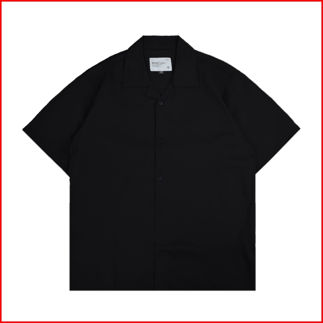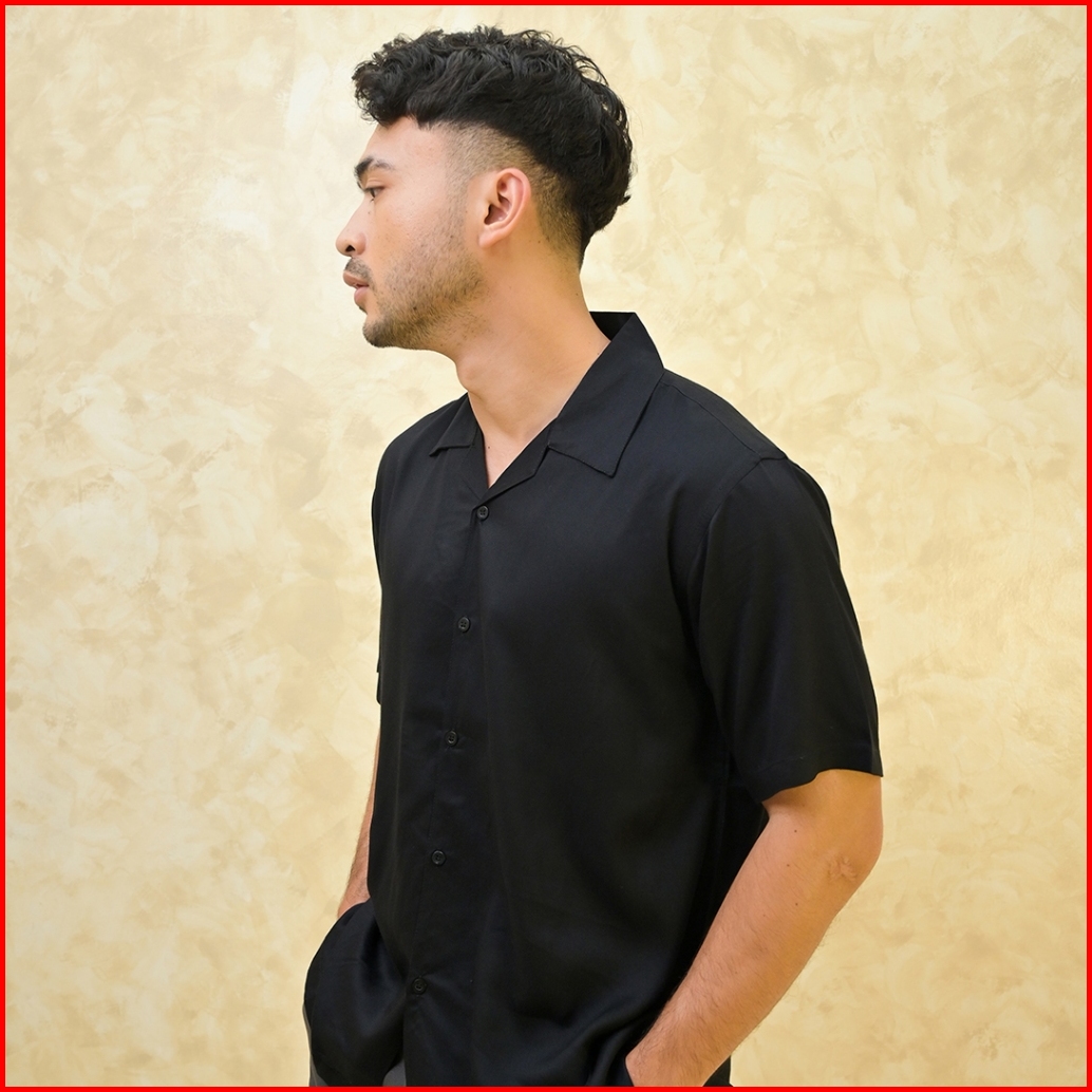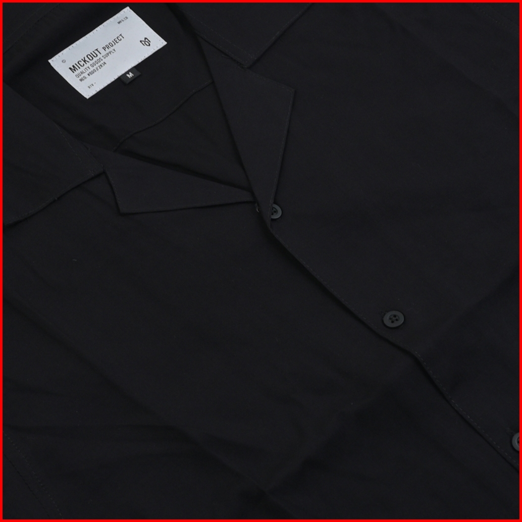 Mickout Solid Casual Shirt - Kemeja Kasual Polos Pria Katun Rayon Relaxed Fit Lengan Pendek - Hitam