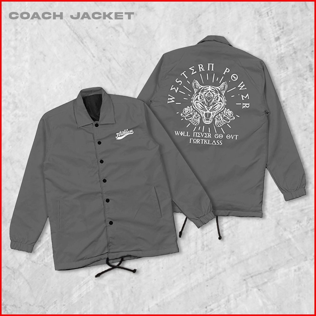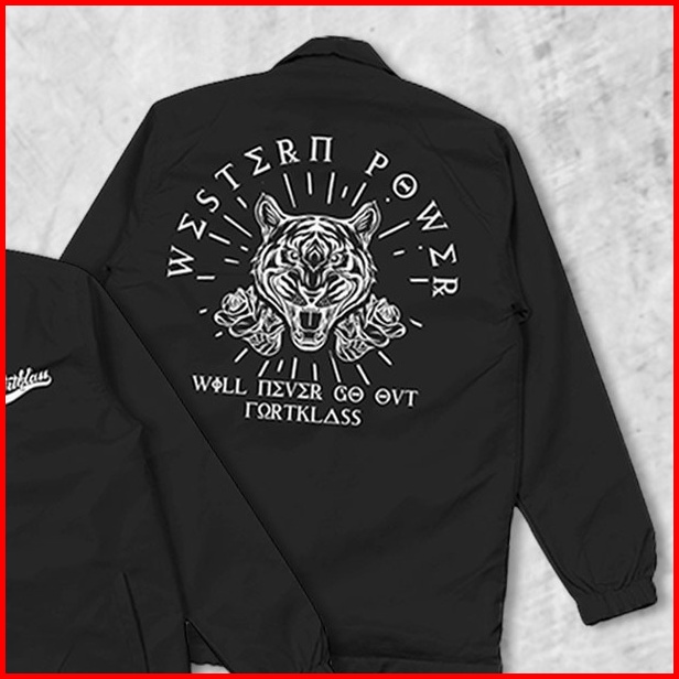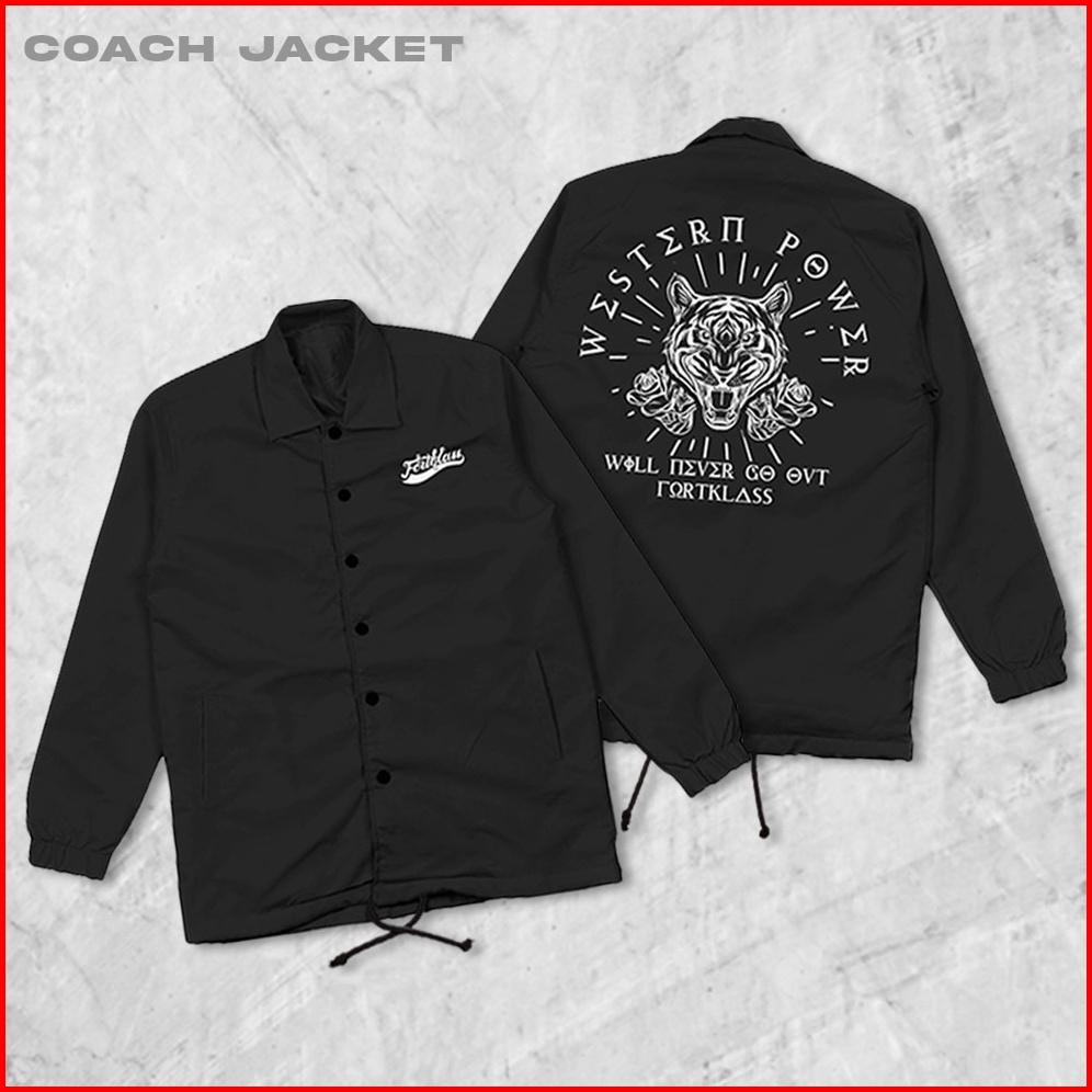 Fortklass Western Tiger Hitam Jaket Coach Pria Jaket Parasut Unisex