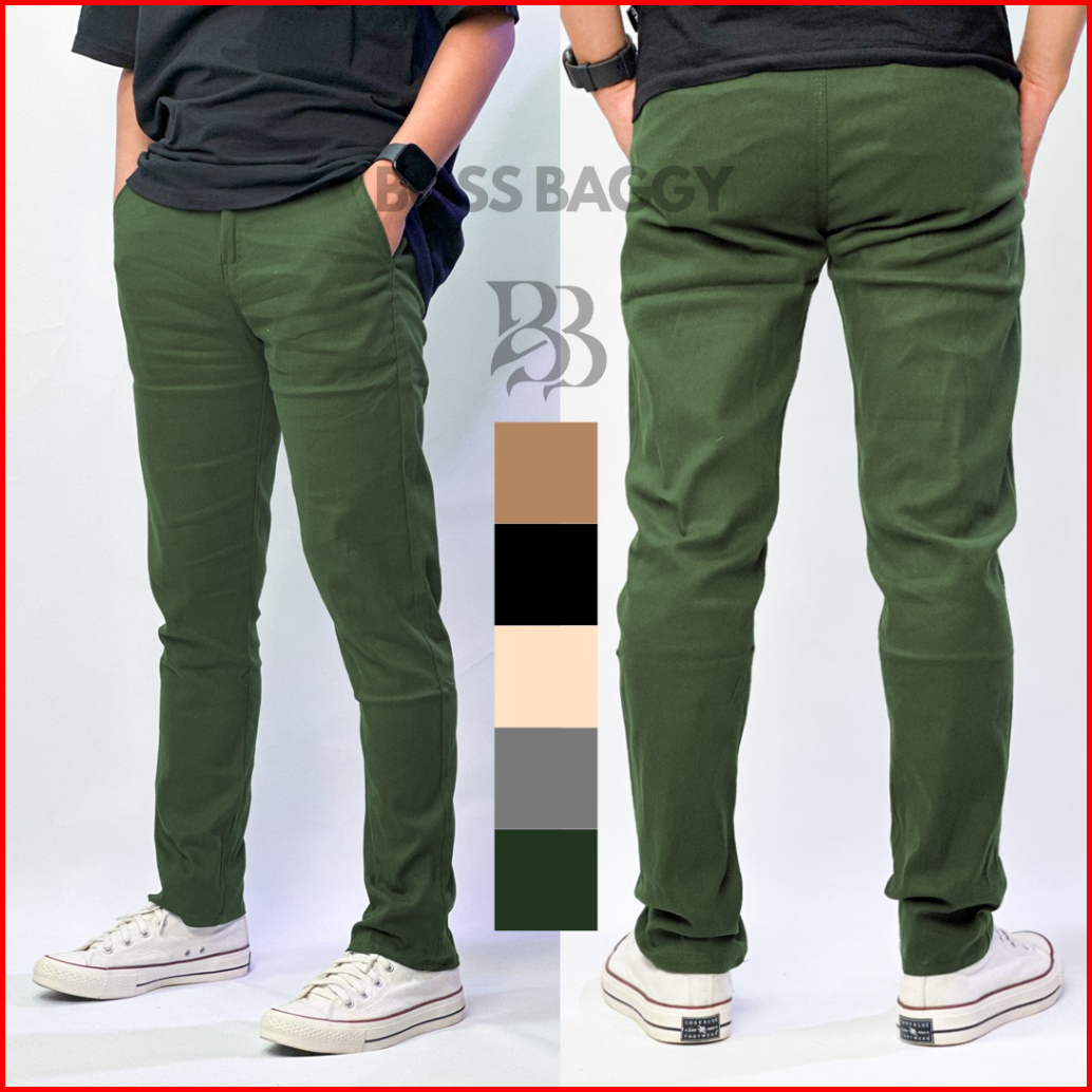 Celana Chino Panjang Pria Slimfit Kerjaharian Santai Casual Formal Hitam Abu Cream Mocca Size 27-38