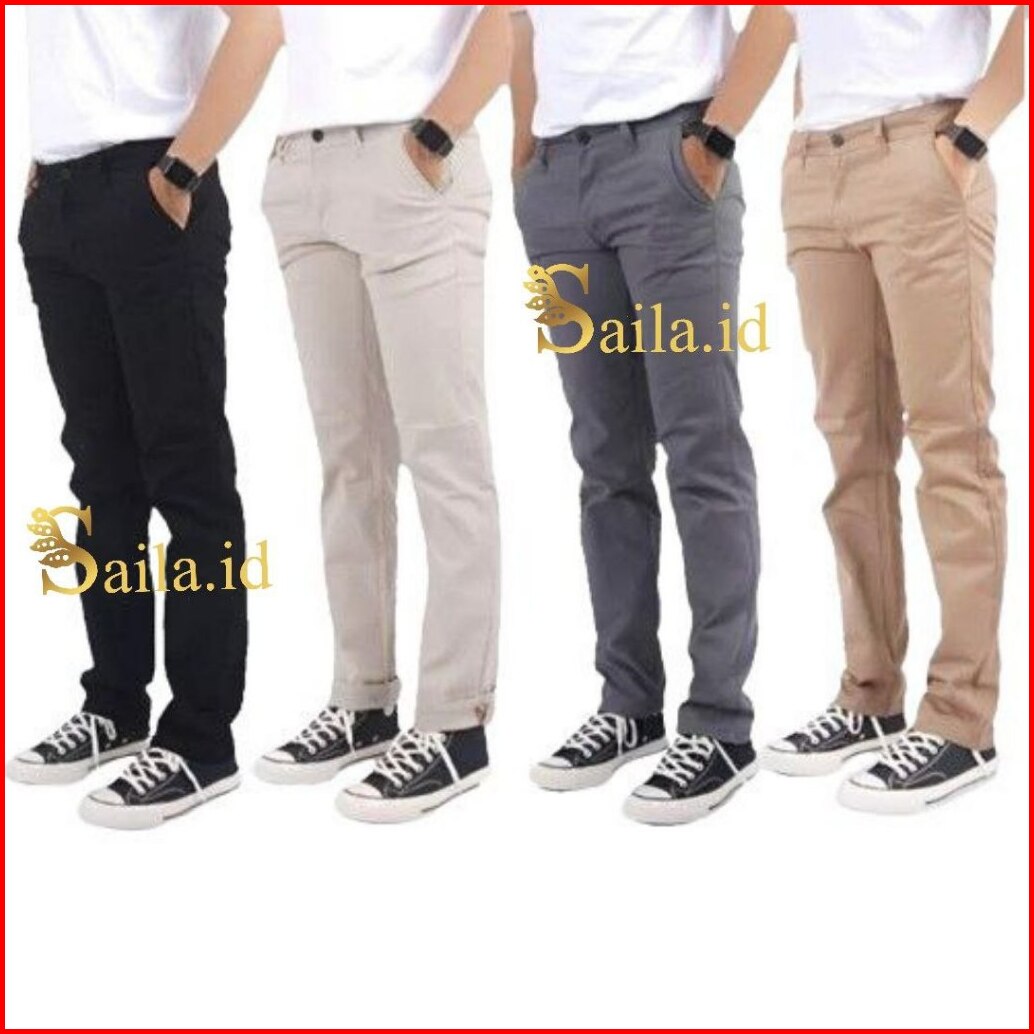 Celana Chino Panjang Pria Slimfit Kerjaharian Santai Casual Formal Hitam Abu Cream Mocca Size 27-38