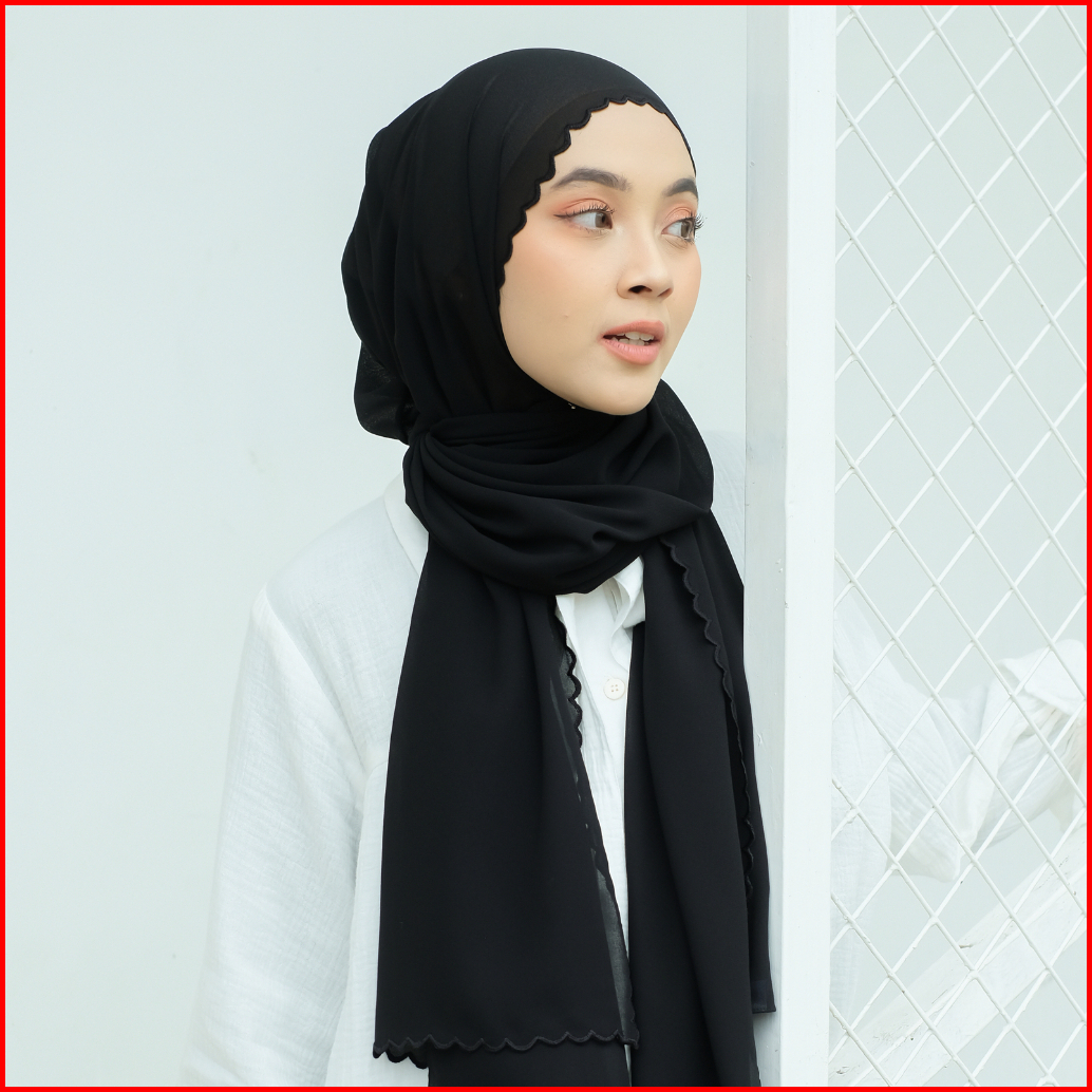 Lozy Hijab - Dyna Classic Shawl Pashmina Embroider Ceruty Bordir Premium