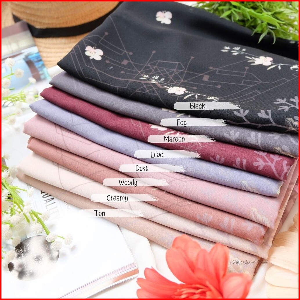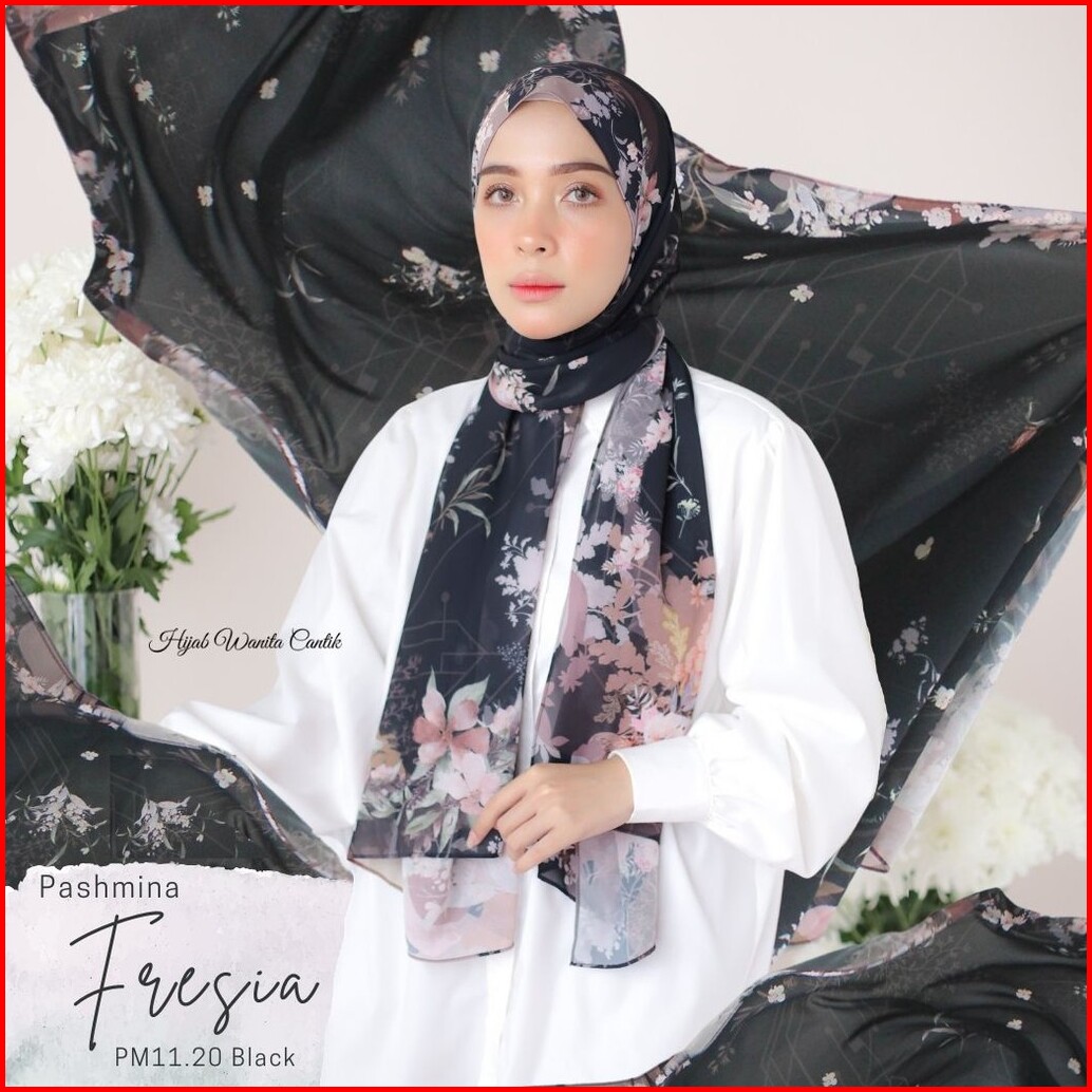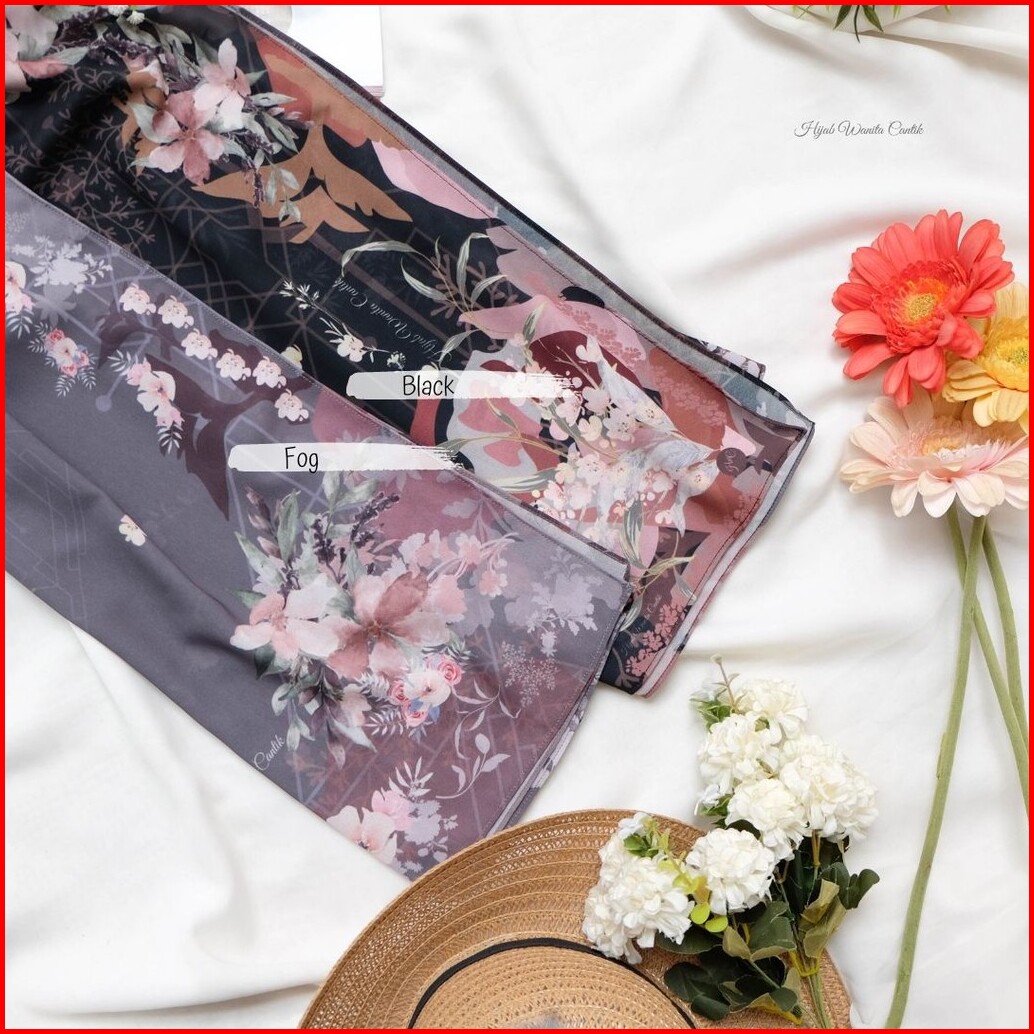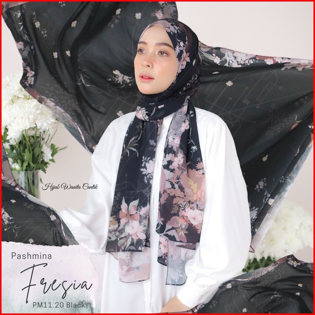 Hira - Hijabwanitacantik - Pashmina Fresia Series Pm11.20 Black Hijab Printing Premium Motif Bunga Jilbab Cerutti Babydo