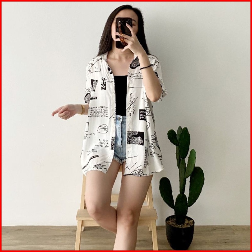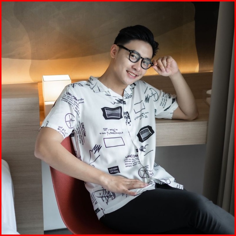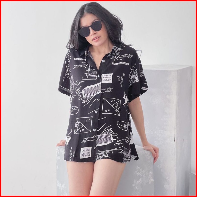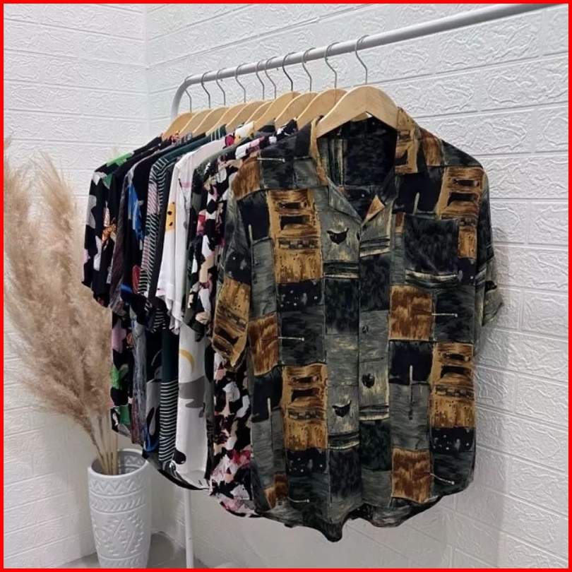 Kemeja Pria Vintage Casual Abstrak Lengan Pendek Retro Pantai Hawai Unisex
