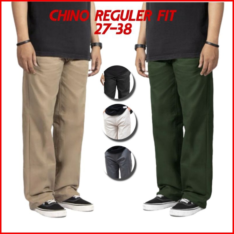 Celana Chinos Standar Reguler Straight Fit Panjang Pria Celana Chino Cinos Reguler Pria Standar Jumbo Warna Abu Cream Mo