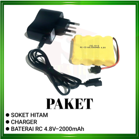 Batery Mobil Remot + Casan RC Ni-CD 4x AA 4.8V - 2000mAh Soket Hitam