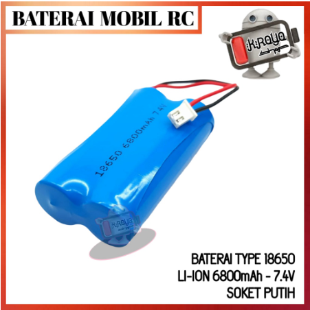 Baterai Mobil RC 2x Lithium 18650 7.4V - 6800mAh Bisa Untuk DVD Portable, Speaker BT Soket Putih