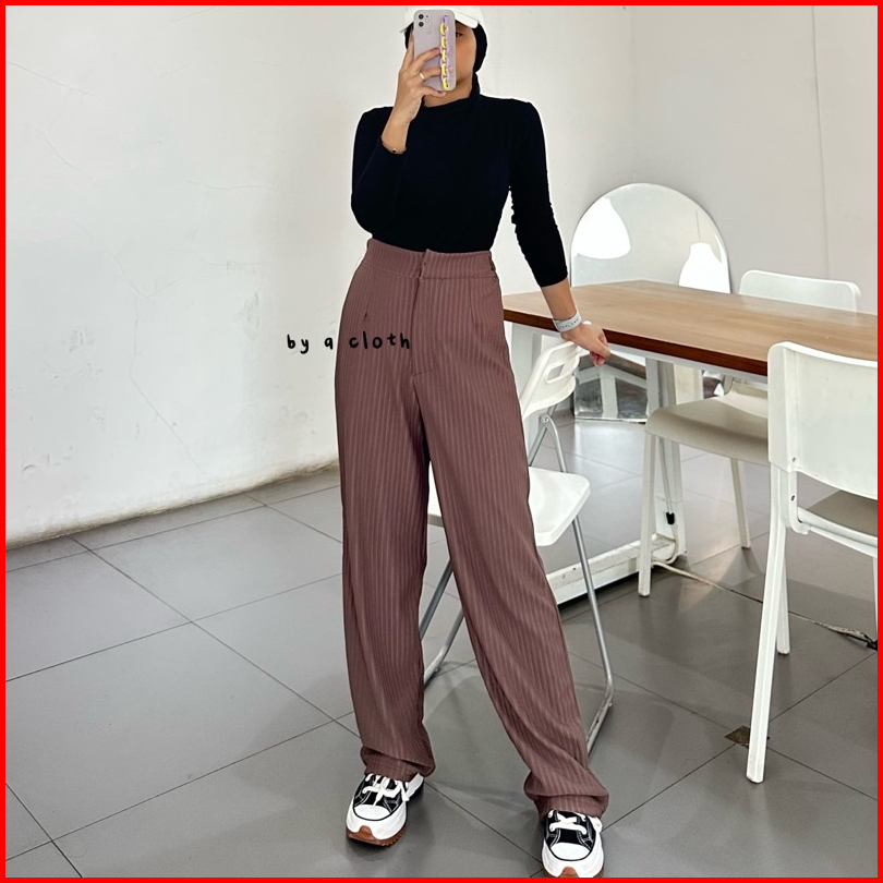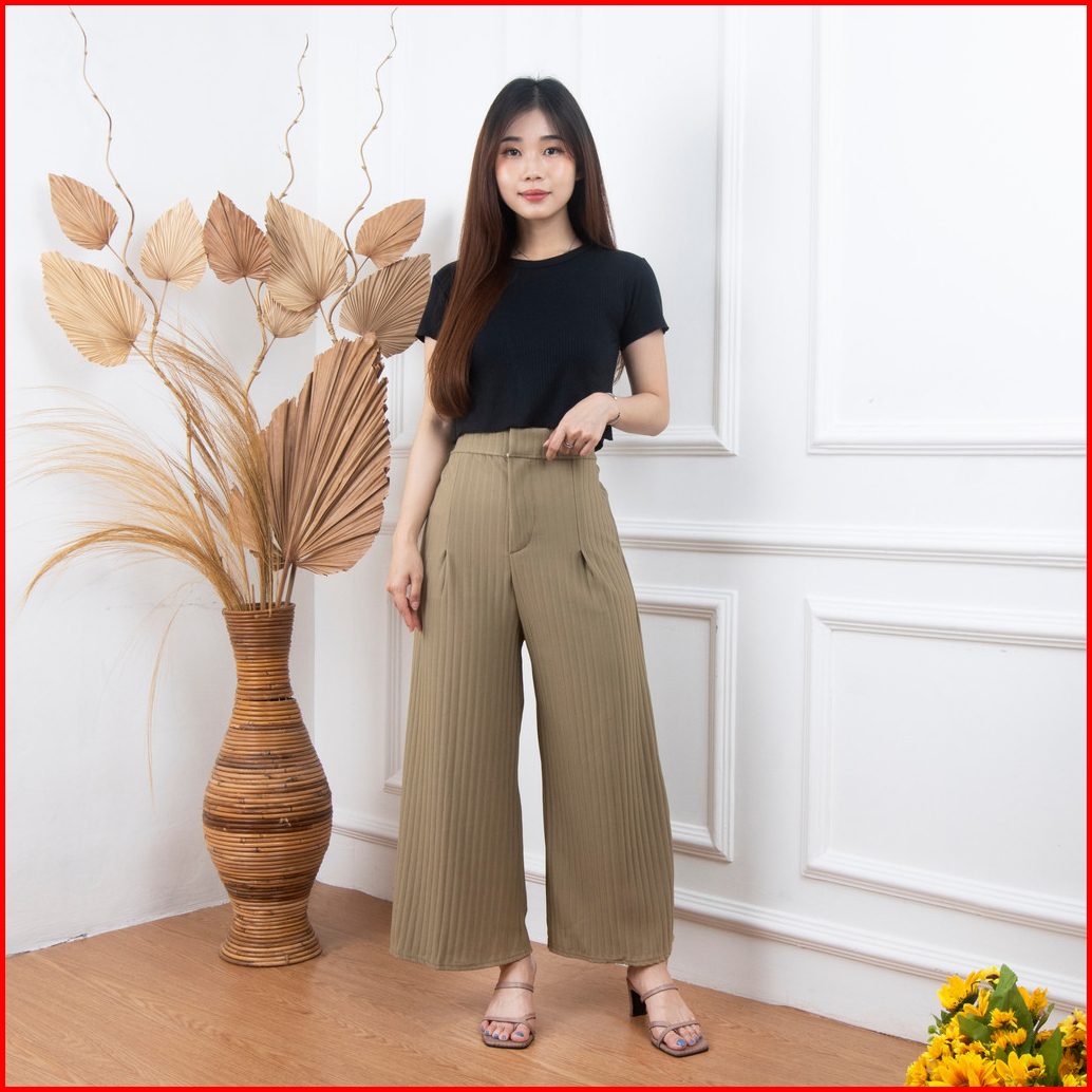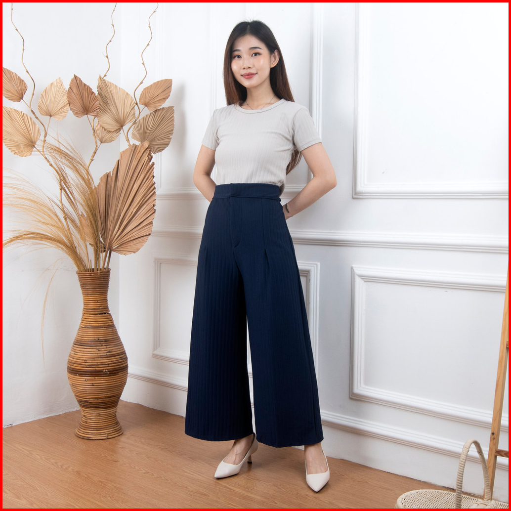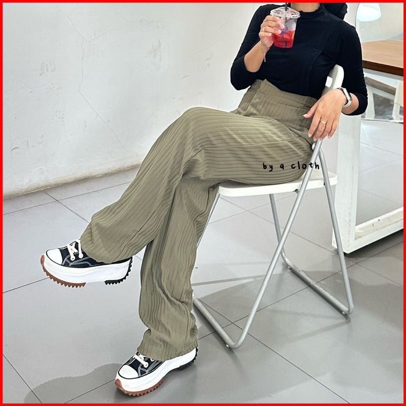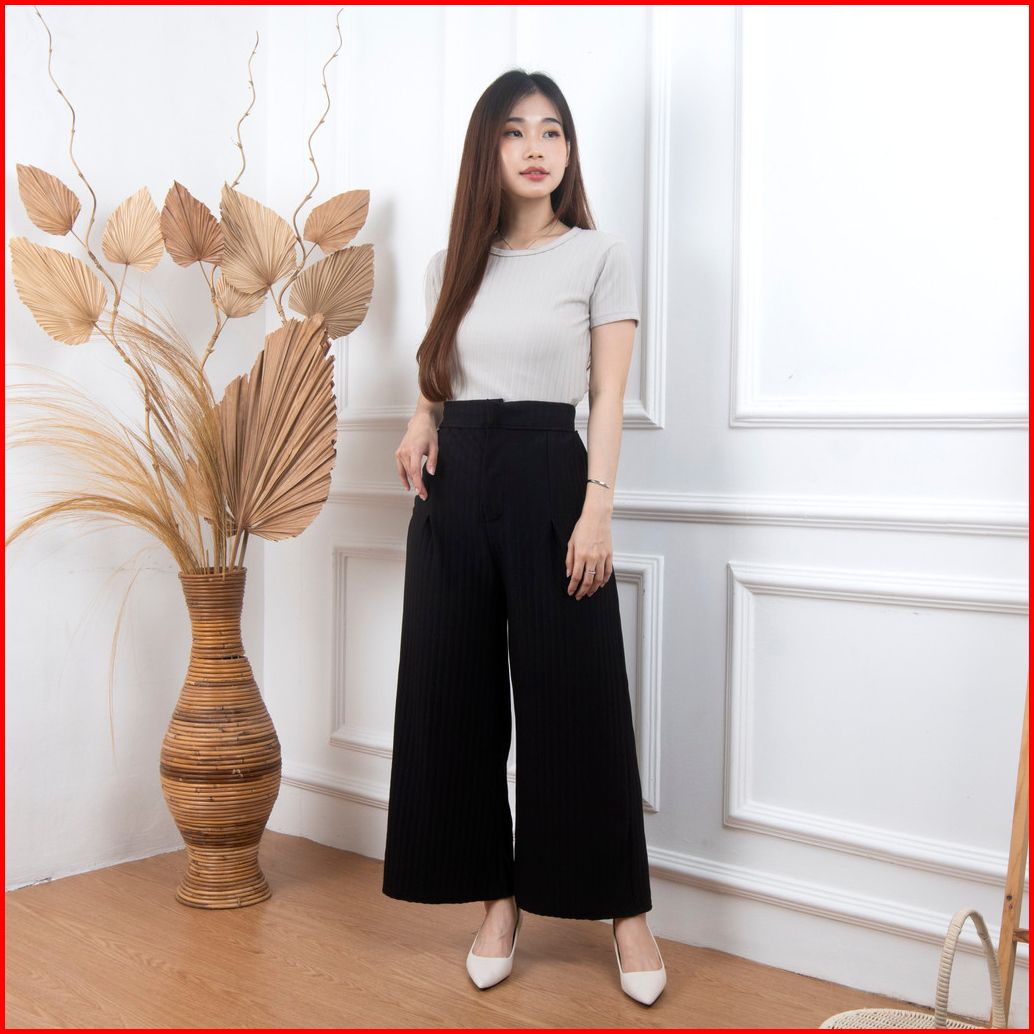 Il - Celana Kulot Rib Hornet Knit Jafa Pants Wanita Korean Style